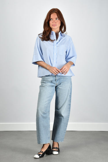 Academia gestreepte blouse Lara met korte mouwen blauw