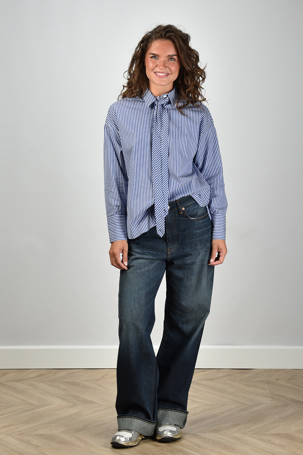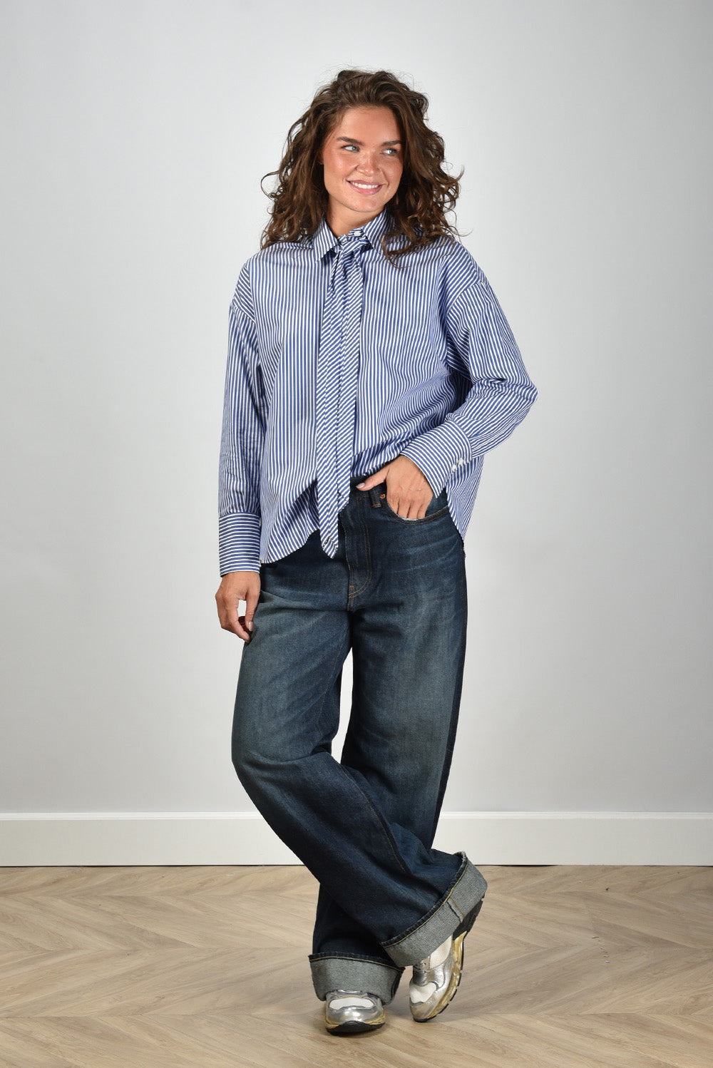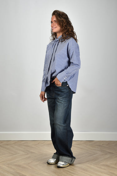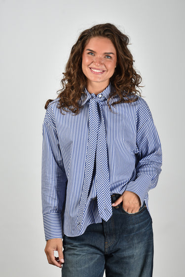 Academia blouse Marianne met stropdas blauw