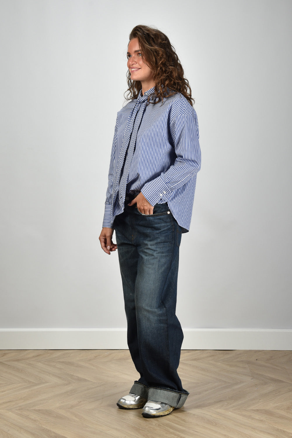 Ons model Lise is 1,73m en Lise heeft maat 36/S/27. Deze blouse valt normaal op maat, we adviseren je je eigen maat te bestellen.