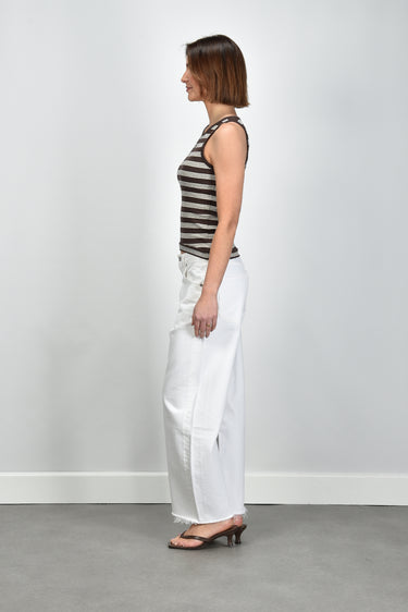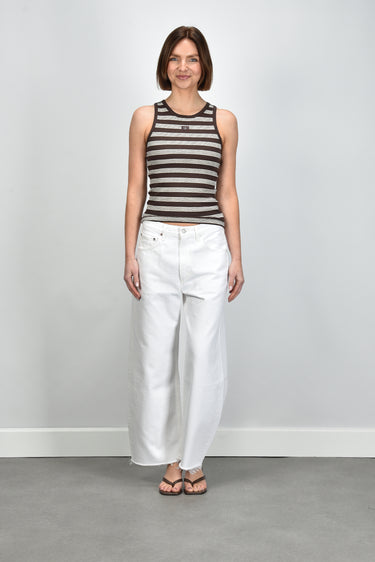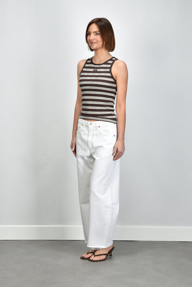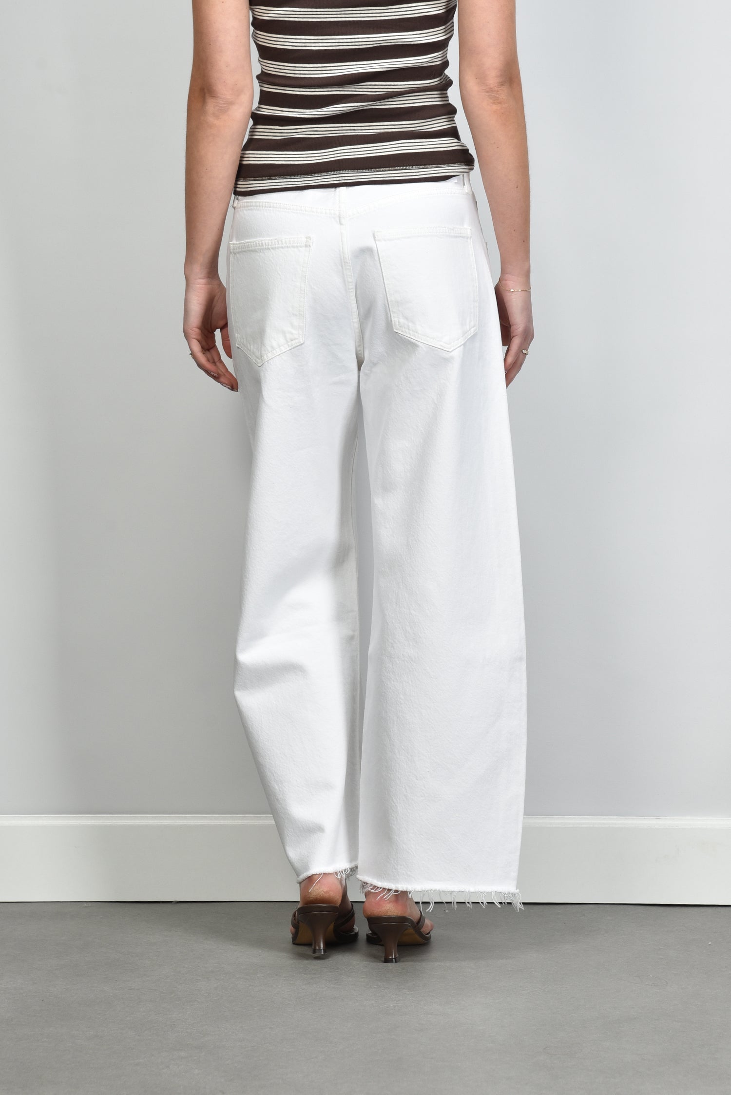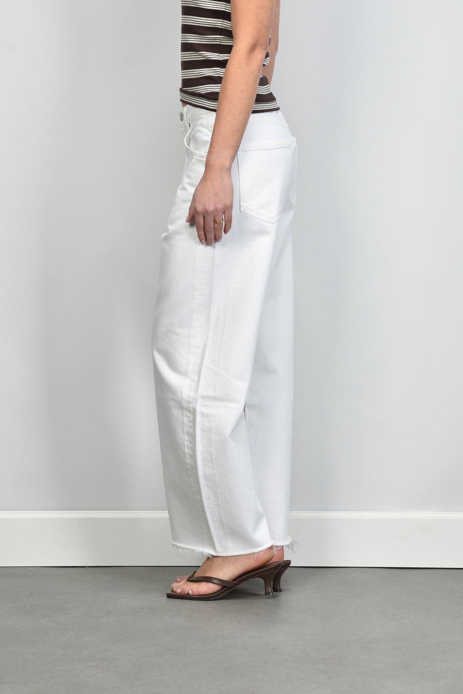 De jeans Low Curve Fray milkshake van Agolde heeft die ontspannen pasvorm waar je meteen een gevoel van vanzelfsprekendheid in ziet. De rechte, lange pijpen raken subtiel de vloer en geven het silhouet een moderne lengte. De middelhoge taille en de zachte wassing in de kleur milkshake zorgen voor een frisse, zomerse toon. Gemaakt van 100% katoen, voelt deze denim stevig en glad aan, met een natuurlijke structuur die mooi blijft bij dragen. De Low Curve-lijn staat bekend om zijn comfortabele fit die precies goed valt. Combineer de jeans met de Morobe sandalen Grace Logo 93 bordo python voor een moderne, vrouwelijke combinatie. Agolde uit Los Angeles brengt met deze jeans een mix van kwaliteit en karakter, vervaardigd met aandacht voor vorm en duurzaamheid.