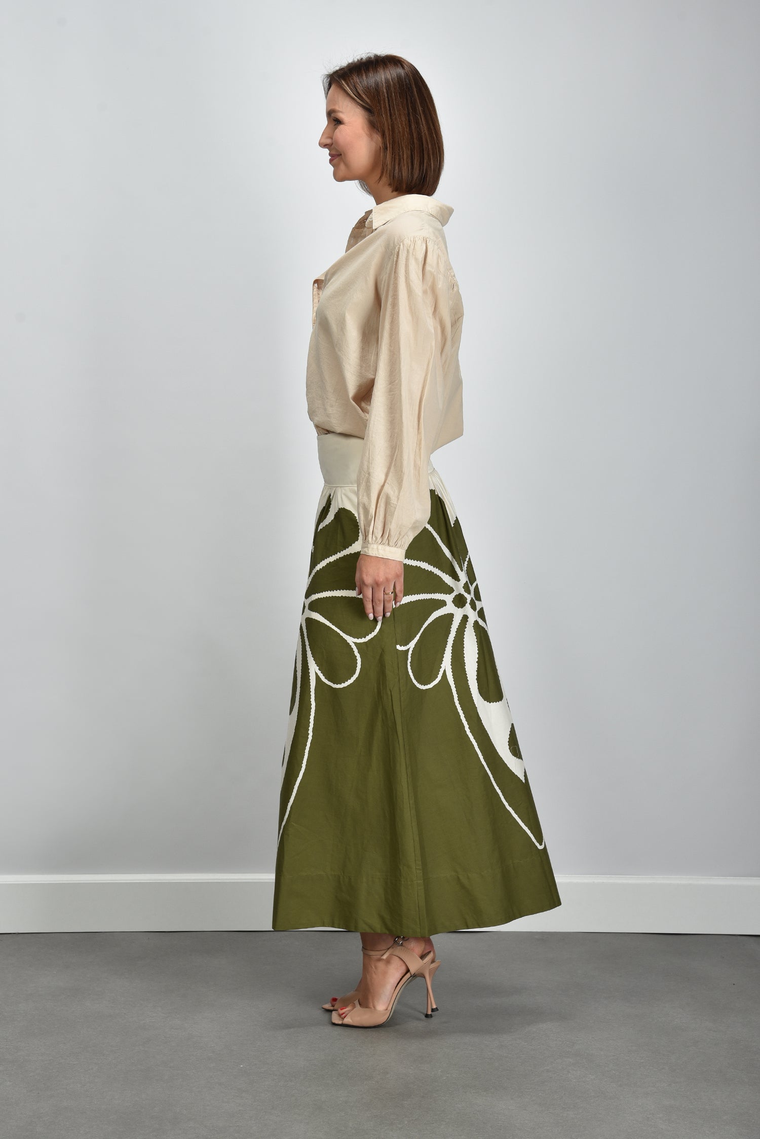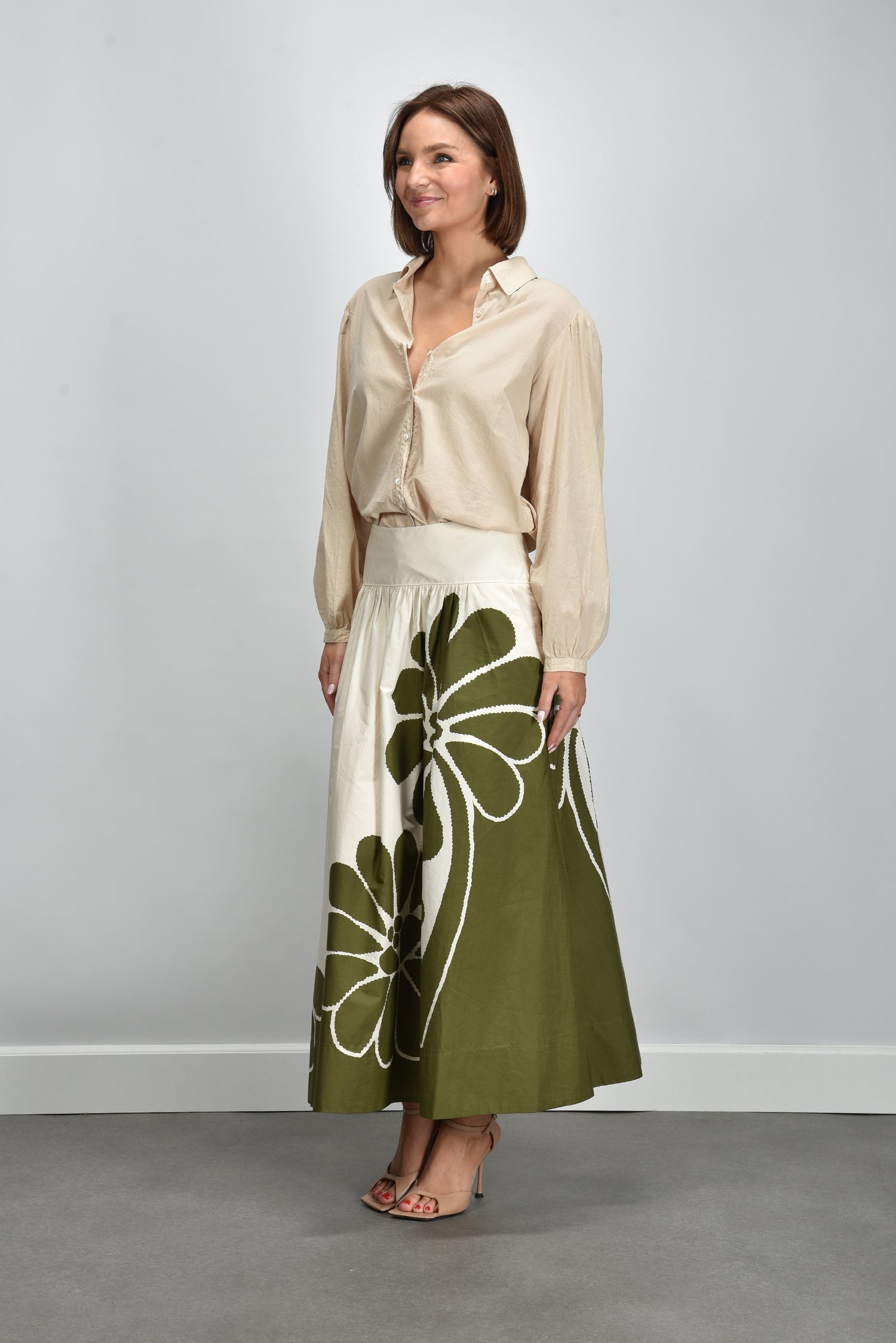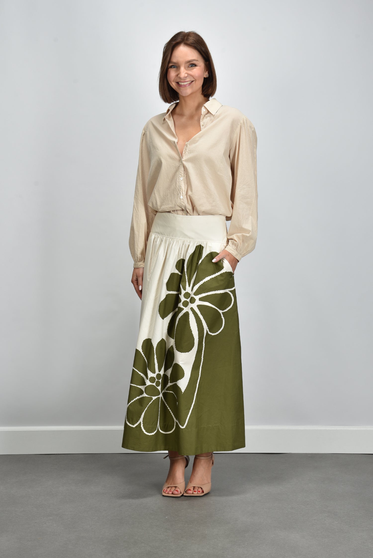 Ons model Esmee heeft 1,74m en Esmee draagt in deze rok maat 36.. Deze rok heeft een normale pasvorm, we adviseren je eigen maat te bestellen.