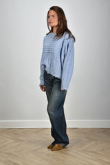 Ons model Lise is 1,73m en Lise heeft maat 38/M/28. deze trui heeft een normale pasvorm