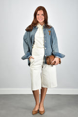 De blouse met knoopsluiting blauw van Ami Paris is zo’n klassiek stuk dat direct opvalt door zijn rustige helderheid. Gemaakt van 100% katoen voelt de stof stevig maar soepel aan. De witte knopen lopen subtiel van kraag tot zoom, terwijl brede manchetten met zichtbare stiksels een nette afsluiting geven. Op de borst prijkt het oranje Ami de Coeur-logo, een klein detail dat het Franse merk meteen herkenbaar maakt. De kleur bleu used geeft de blouse een zachte, gedragen toon die goed tot zijn recht komt op een lichte jeans of een crèmekleurige pantalon. De pasvorm valt normaal, dus je kunt gerust je eigen maat aanhouden.