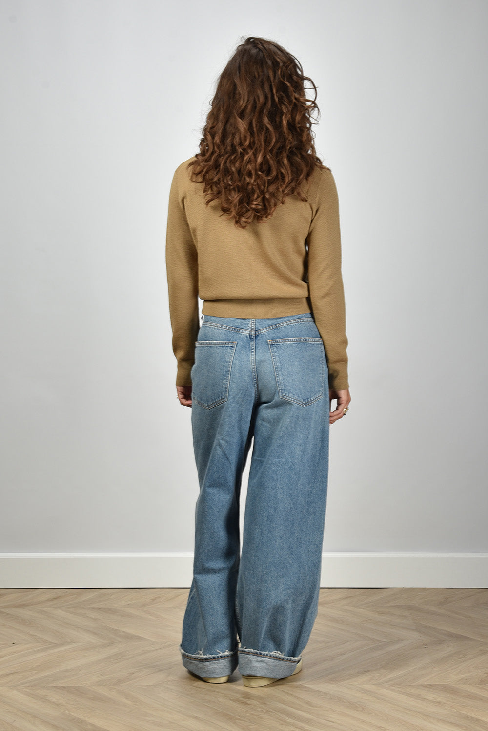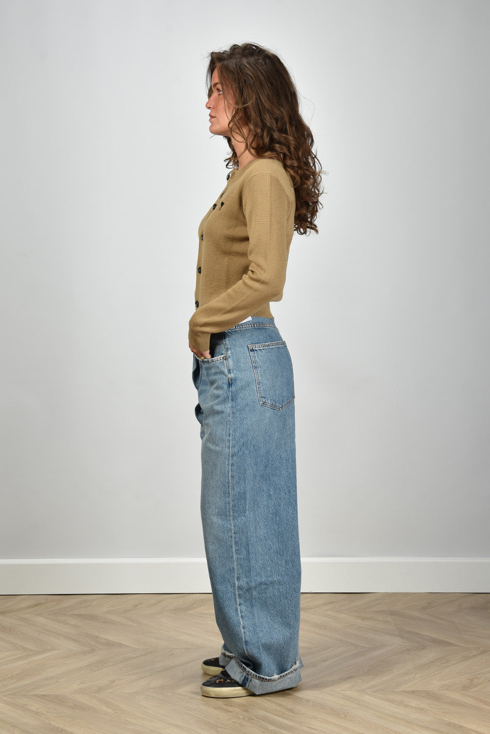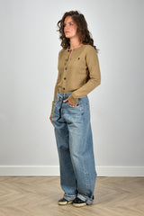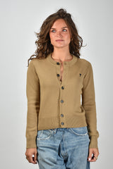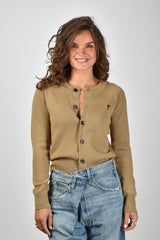 Ami Paris vest ADC Merinos met zwart logo op de borst en knoopsluiting bruin