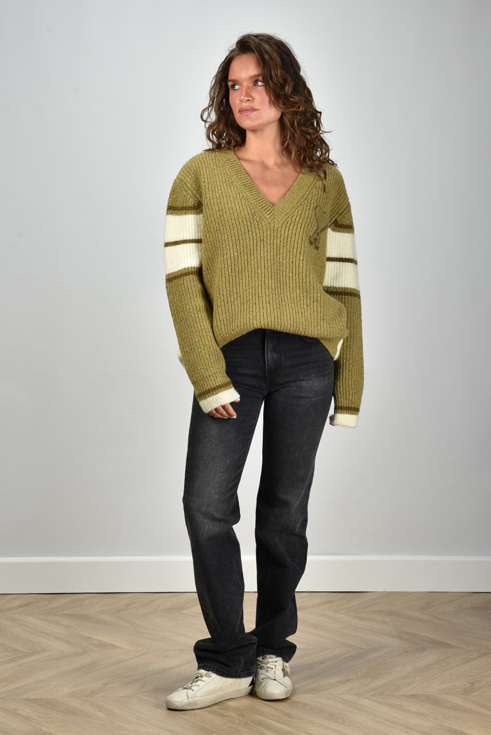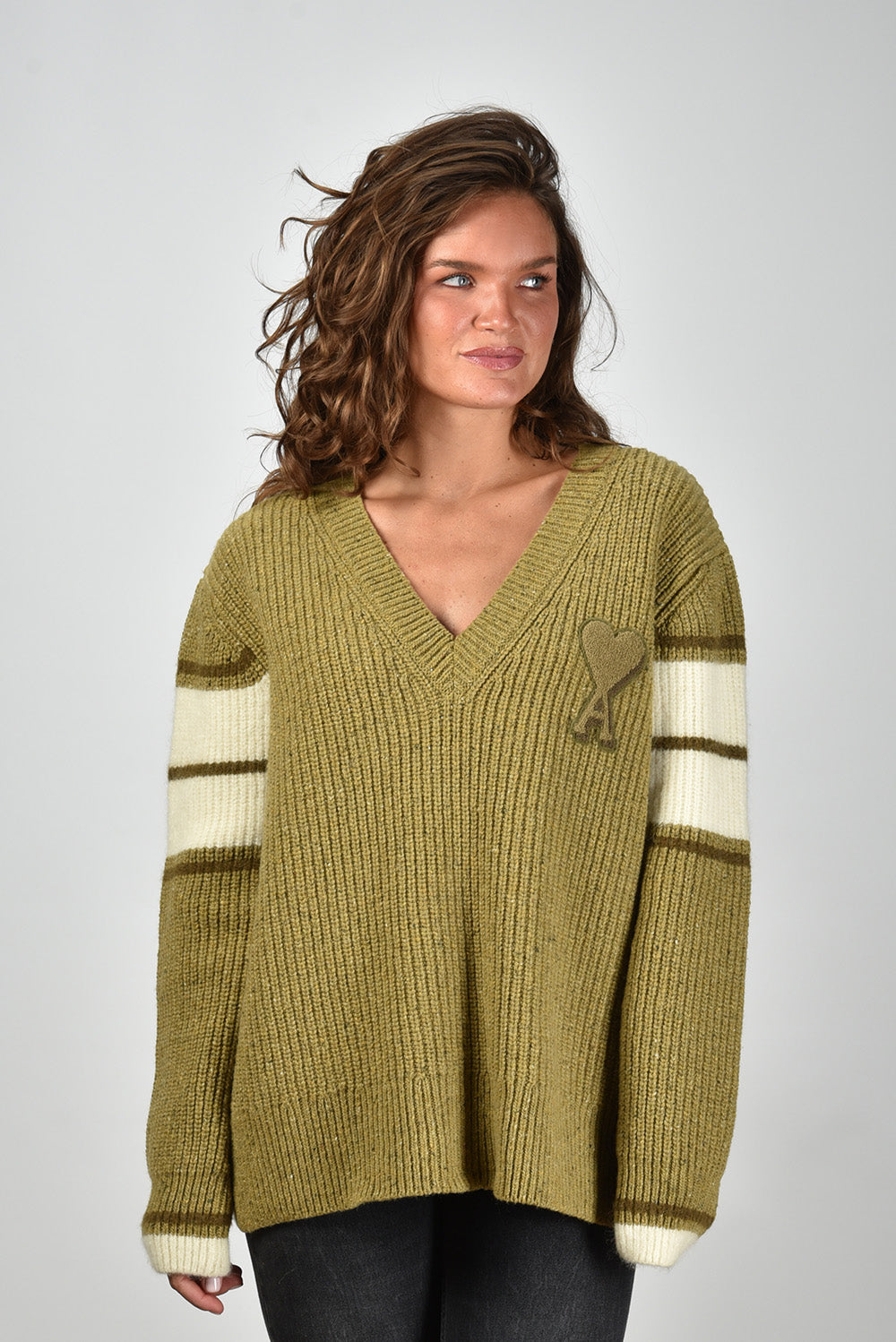 Ami Paris trui gebreid College met logo op de borst groen