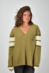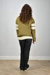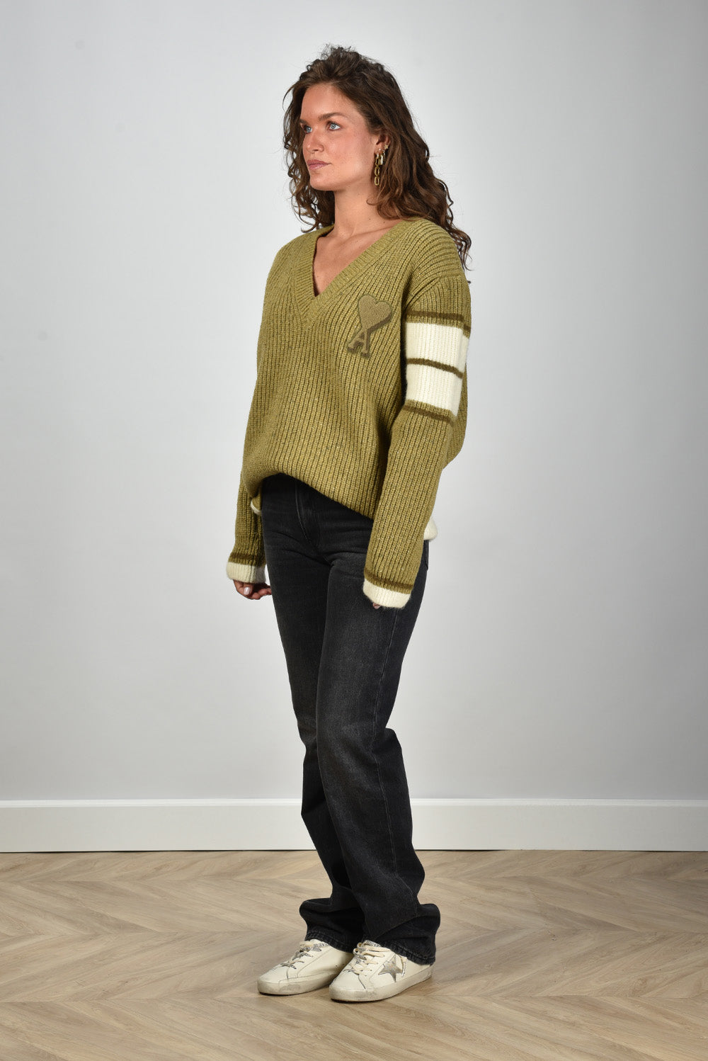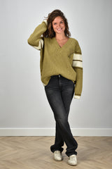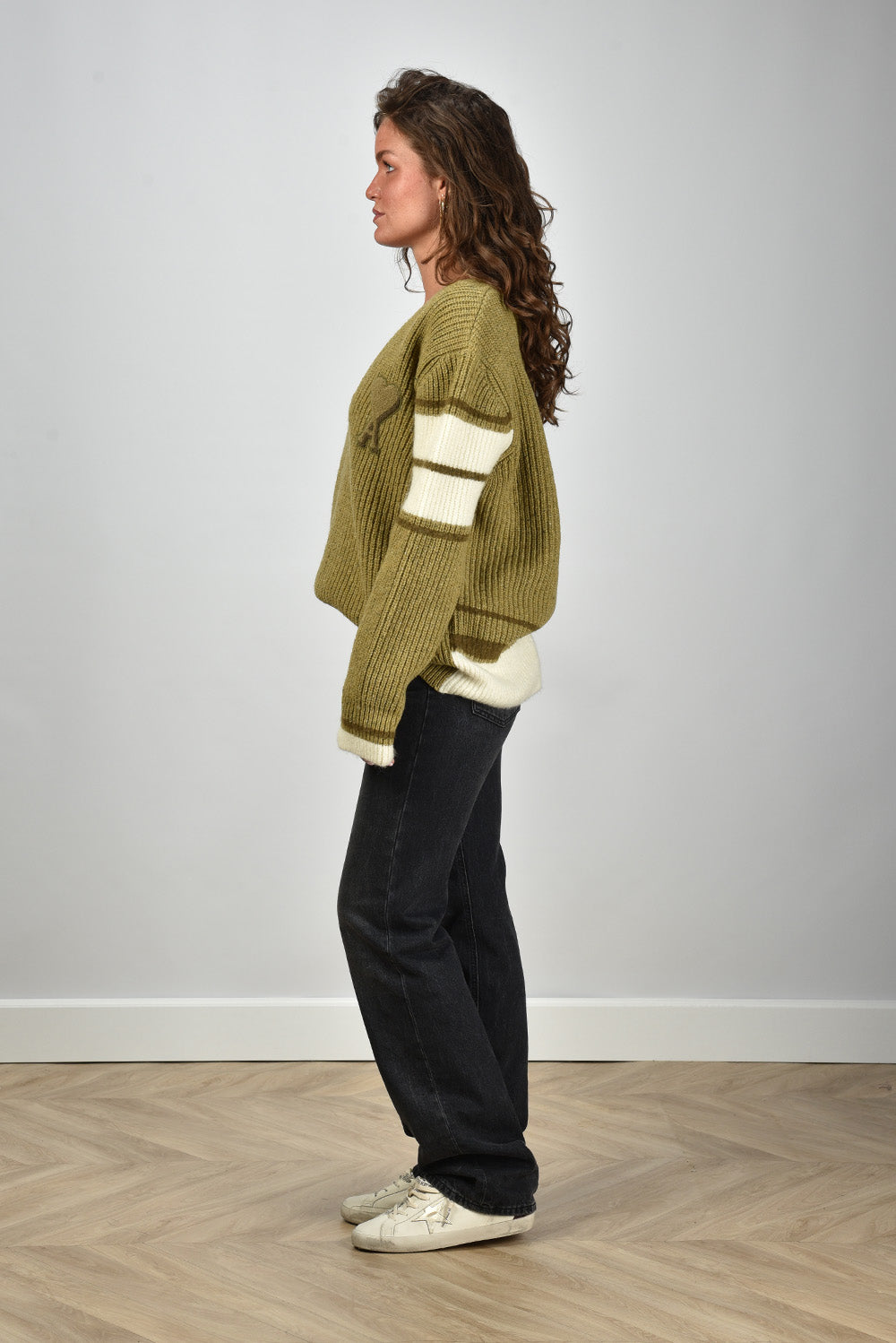 Ons model Lise is 1,73m en Lise heeft maat 36/S/27. Deze trui valt oversized, we adviseren je eigen maat te bestellen.