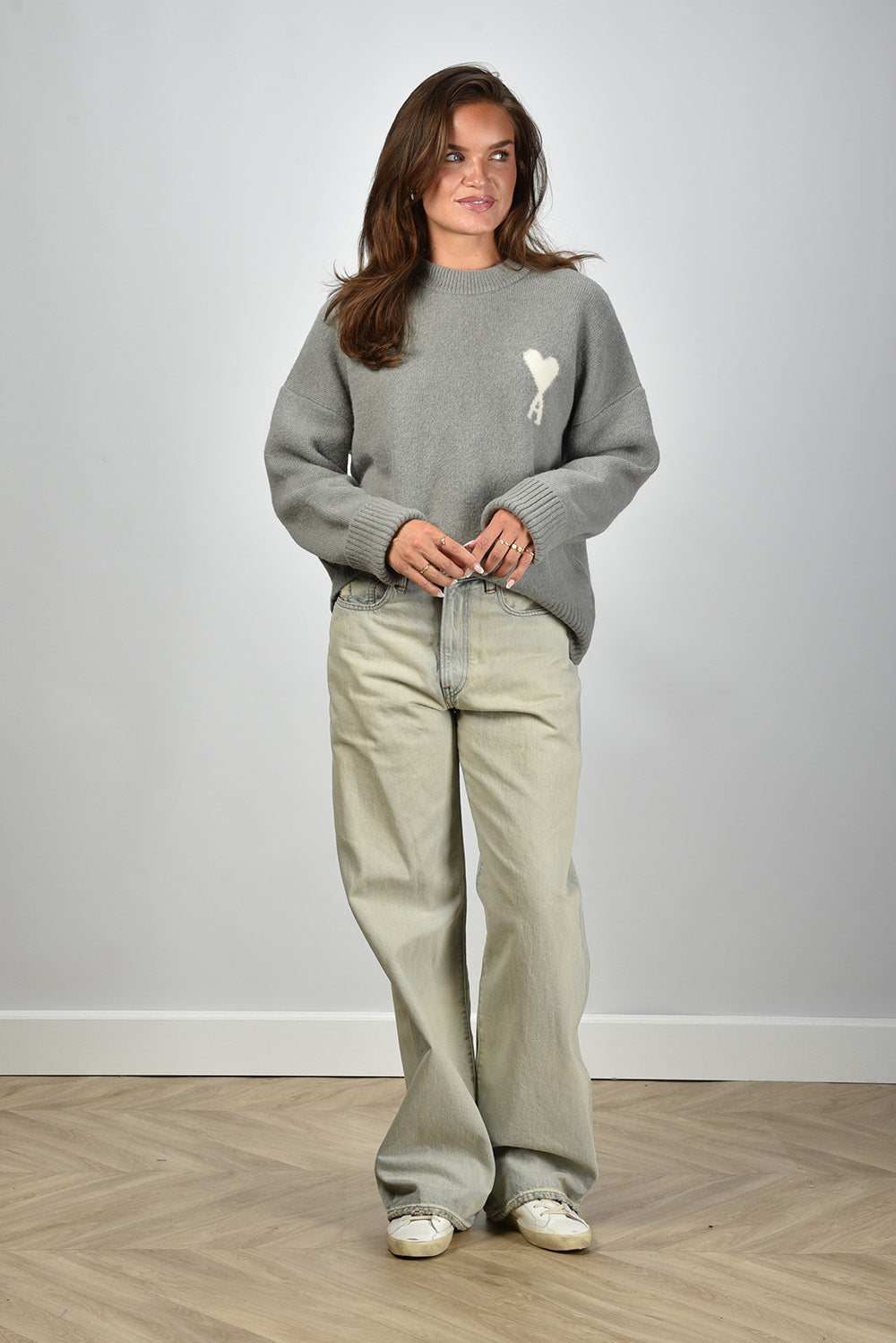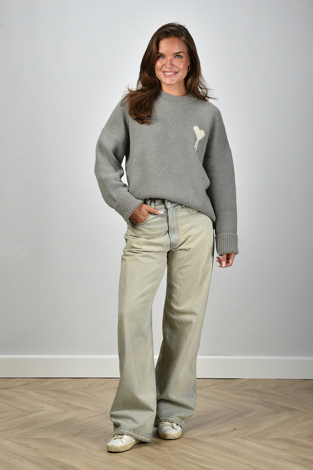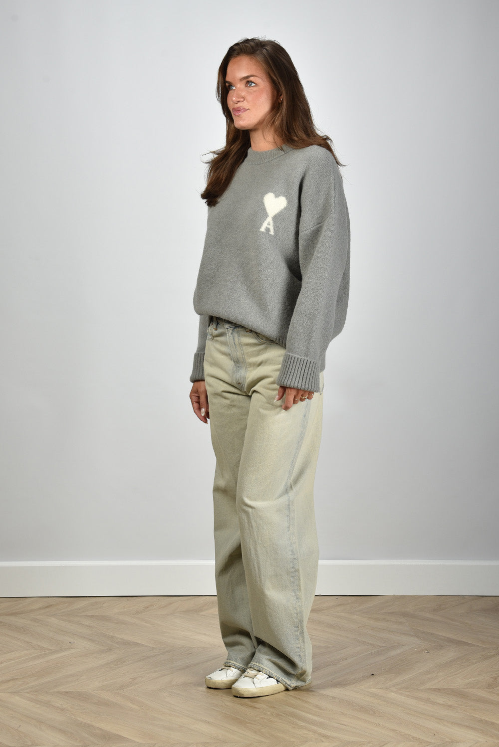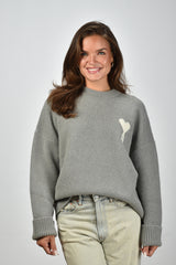 Ami Paris trui ADC Nuage gebreid met wit logo op de borst grijs