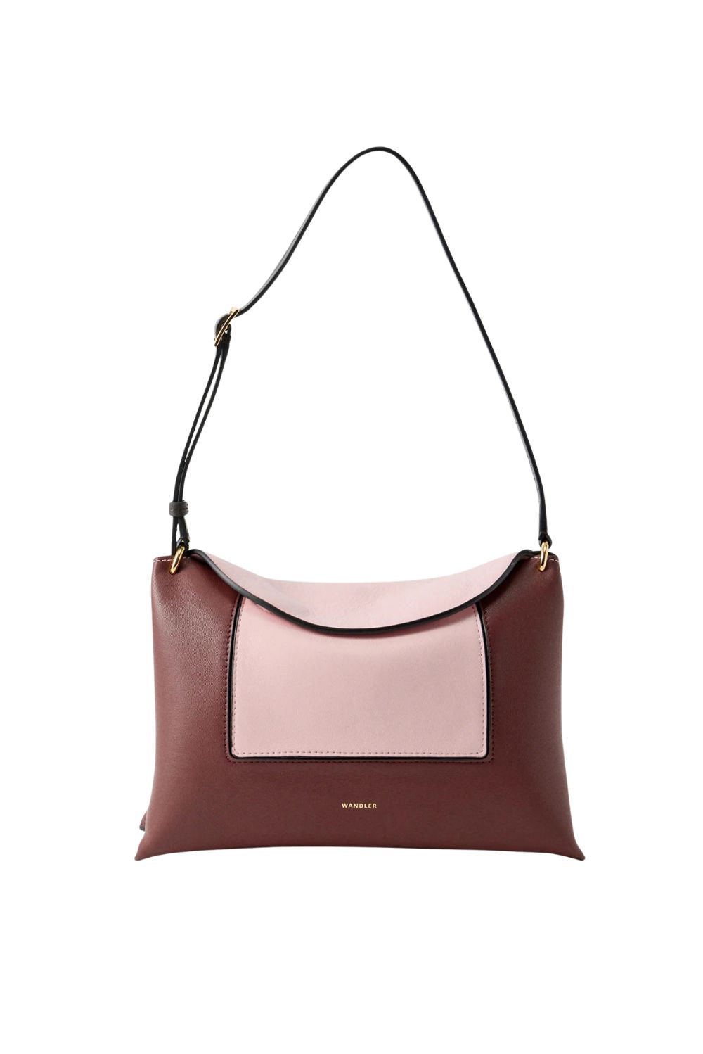 Dit is de crossbody Penelope Slouch pink mix van Wandler. De tas valt op door het tweekleurige ontwerp in roze en donkerrood, met een slanke zwarte schouderband en kleine goudkleurige details. Het soepele kalfsleer voelt compact en stevig aan, terwijl de magneetsluiting snel en netjes sluit. Binnenin zit een zachte suède voering die de vorm mooi volgt. Het verstelbare handvat laat de tas rustig langs het lichaam hangen. De goudkleurige merkletters aan de voorkant geven een helder accent. De Penelope Slouch wordt in Italië met de hand gemaakt, waar elk detail nauwkeurig wordt afgewerkt.