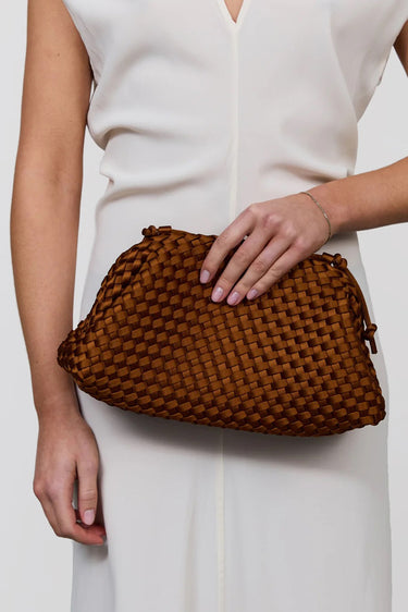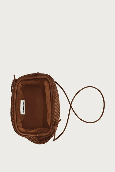 Dit is de Marrea clutch, met de hand gevlochten in bruin neopreen. Het materiaal houdt de tas licht en stevig tegelijk. De zachte plooien geven het model een rondere vorm die prettig in de hand ligt. Het lange, dunne koord maakt dragen eenvoudig, of je het nu om je pols laat vallen of losjes vasthoudt. Het herkenbare vlechtwerk past bij de rustige stijl waar Marrea om bekendstaat, ontstaan uit hun liefde voor strand en zee. Elke tas wordt zorgvuldig gemaakt in een ontwerp dat direct laat zien waar het merk voor staat.