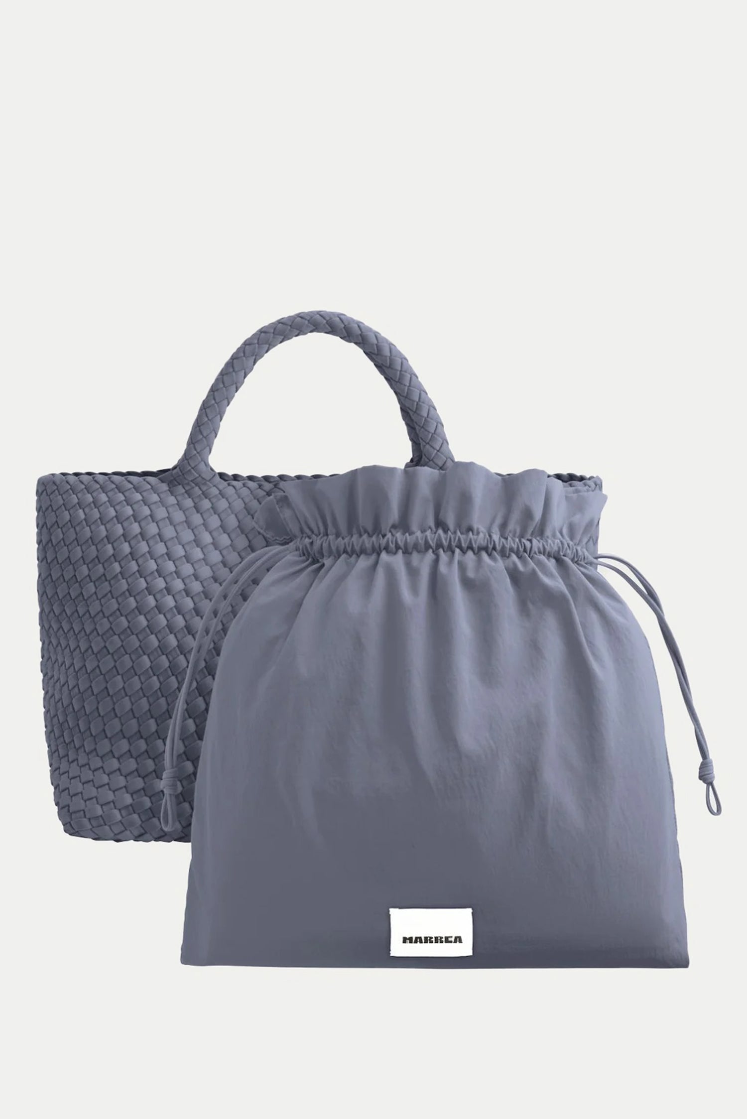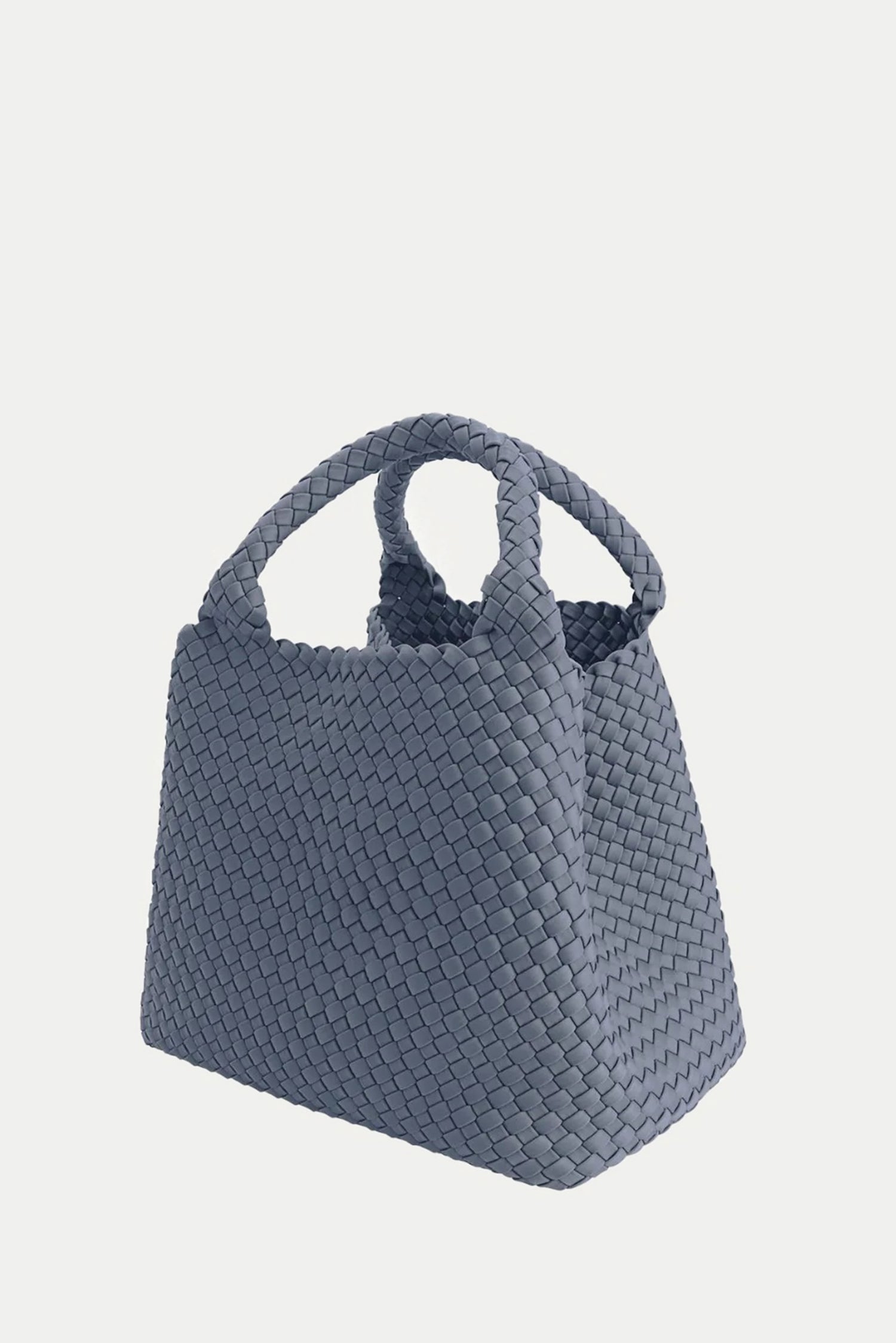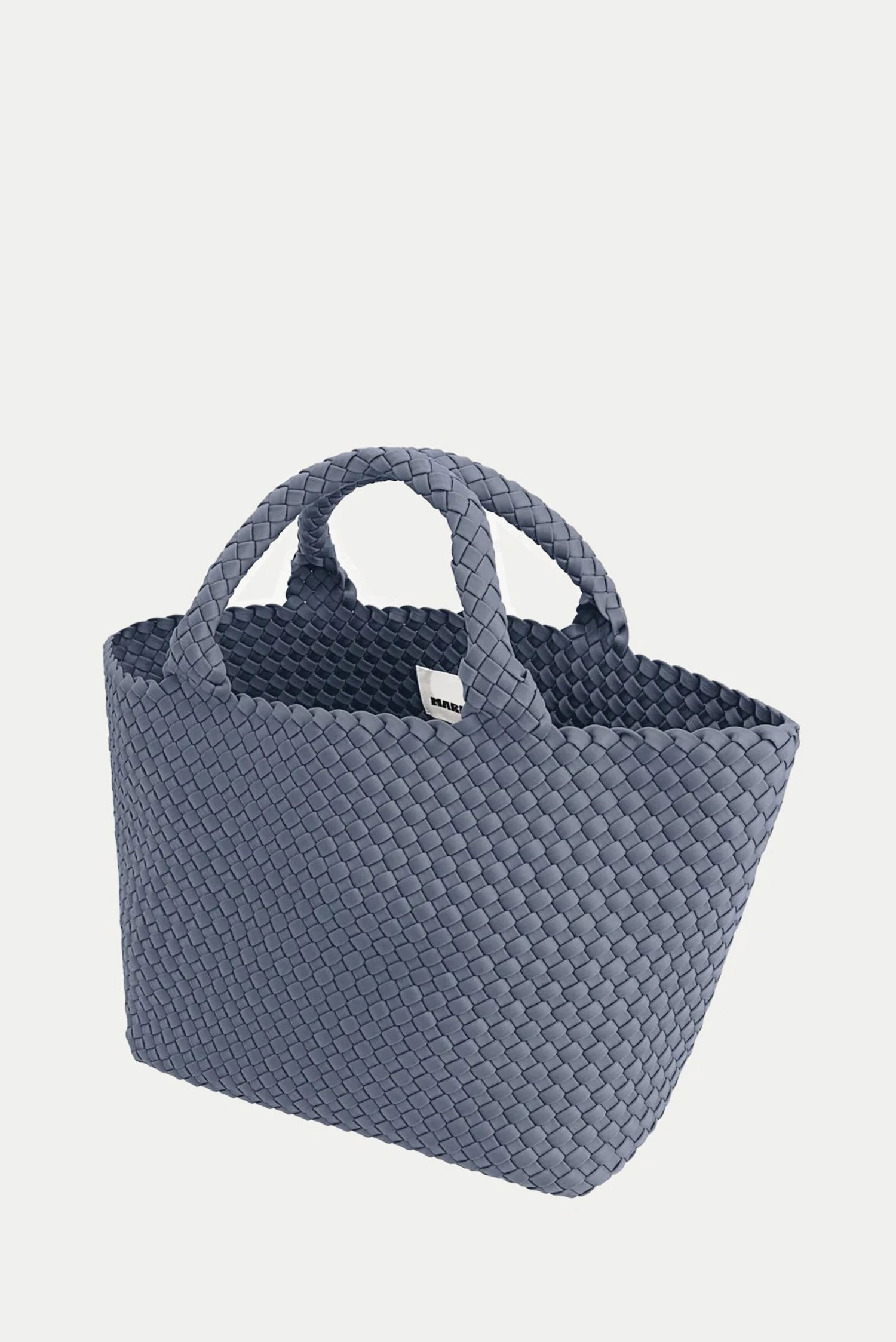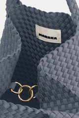 Hier zie je de shopper Medium ice ice baby van Marrea. De tas valt meteen op door het brede silhouet dat naar boven toe ruim uitloopt. Het gevlochten neopreen voelt licht in de hand en blijft toch stevig, ideaal voor dagelijks gebruik. De korte handvatten liggen compact in de hand en volgen dezelfde structuur als de shopper zelf, waardoor het geheel rustig oogt. De kleur ice ice baby geeft een frisse helderheid die mooi past bij het materiaal. Marrea werkt met de hand aan deze shoppers, waardoor elke tas een duidelijke structuur en nette afwerking heeft. Het materiaal blijft licht, zelfs wanneer de tas goed gevuld is.