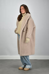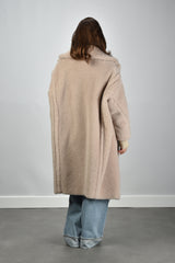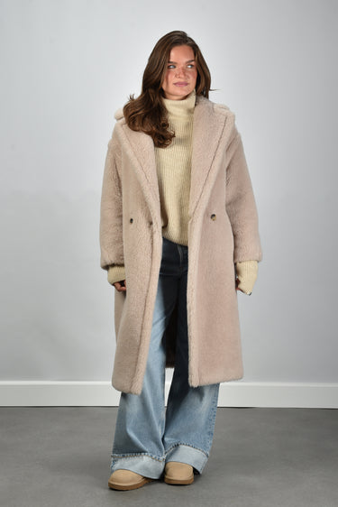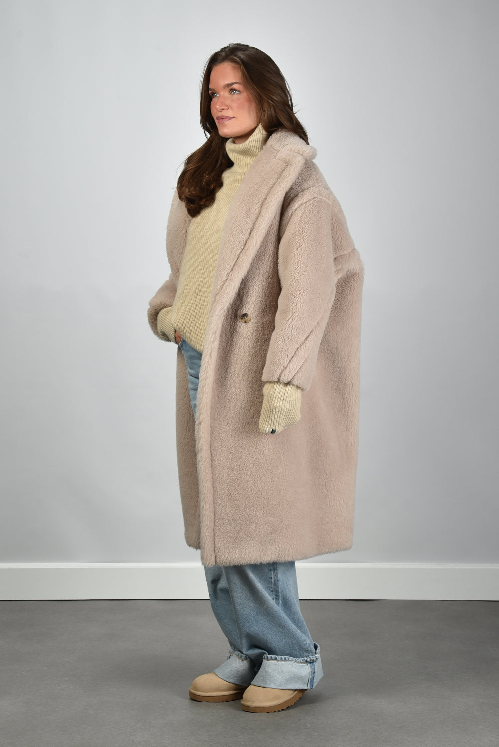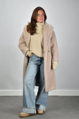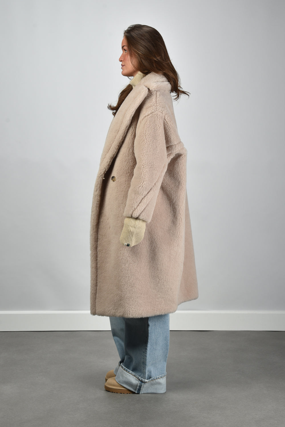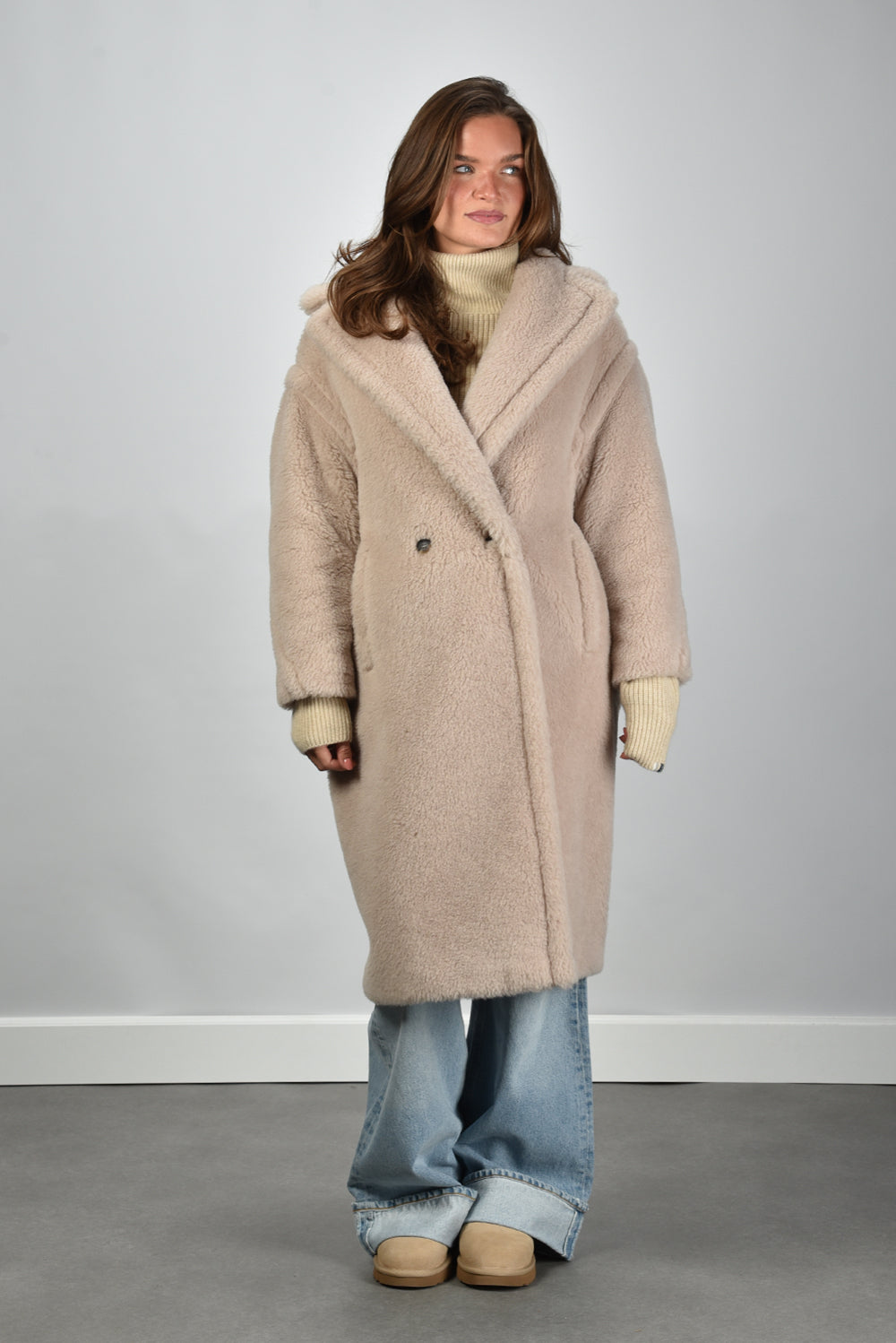 Prachtige jas van het merk Max Mara, model Tedgirl, in de kleur cacha. Het teddy materiaal voegt ook nog een tijdloze twist toe aan de jas, maar deze komt mede ook door de hoogwaardige kwaliteit. De jas heeft een gestructureerde pasvorm en een knielange lengte, waardoor het een veelzijdig kledingstuk is voor zowel formele als informele gelegenheden. Model is 1,73 m, heeft maat M en draagt maat M.