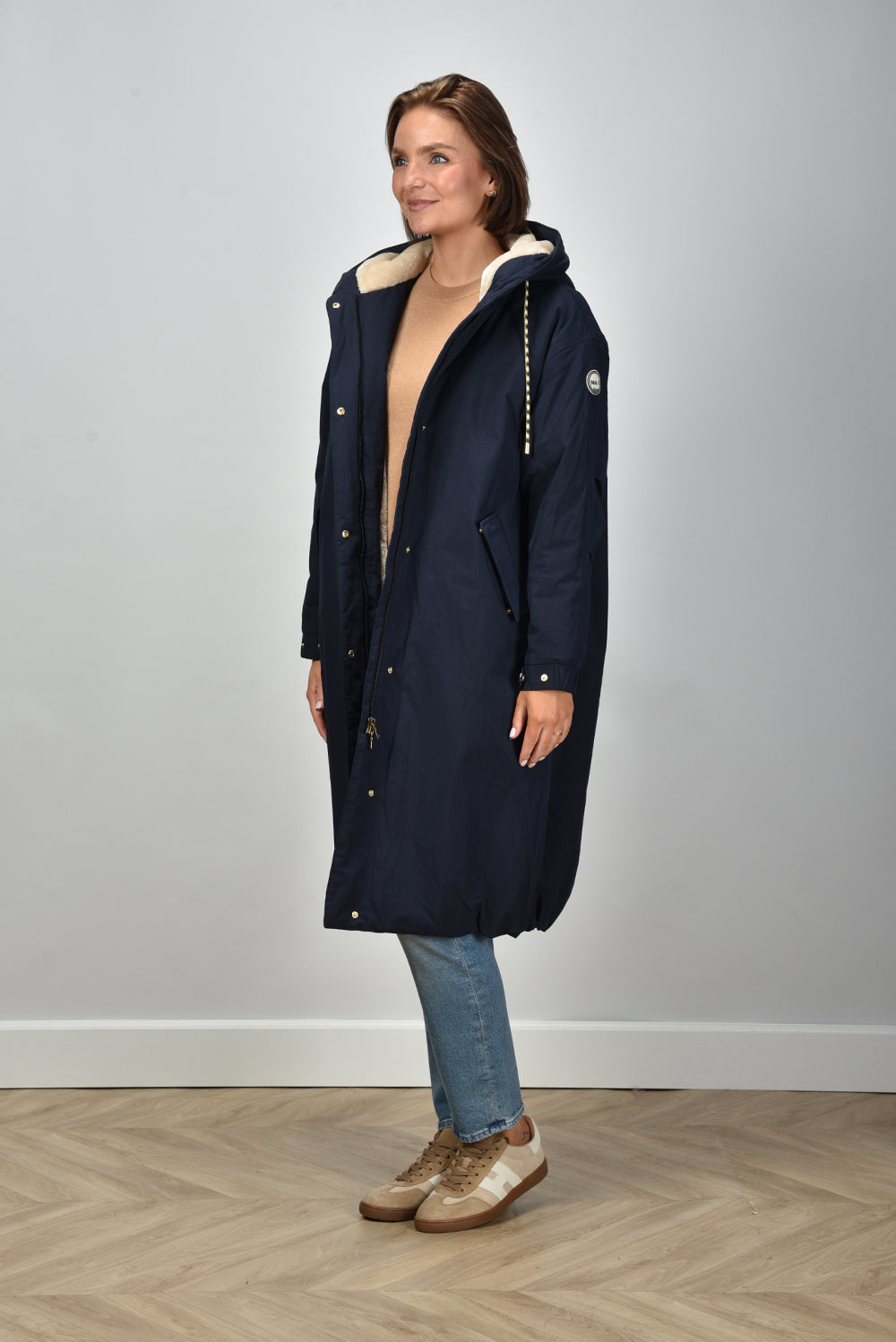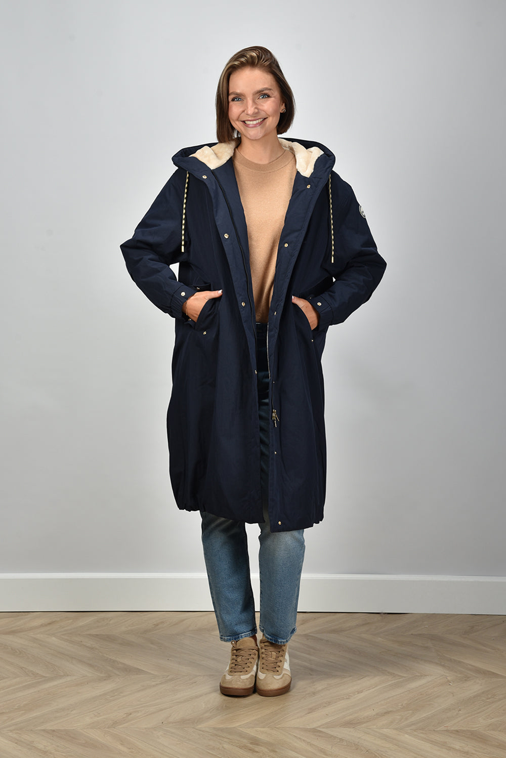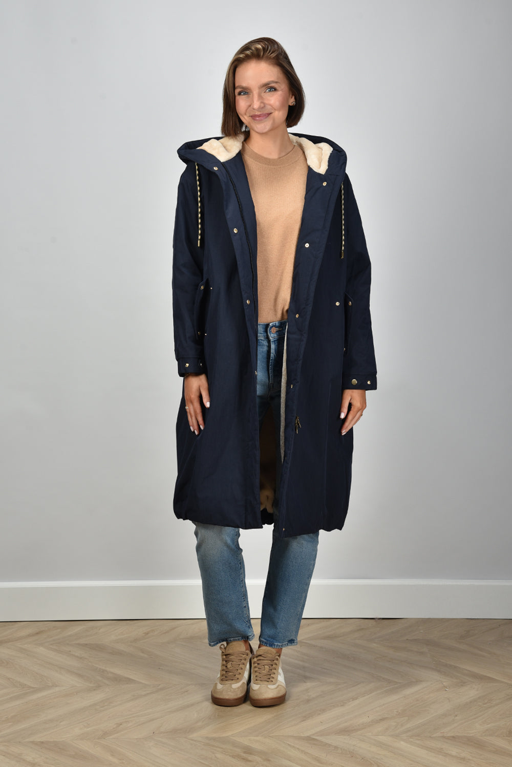 Ons model Esmee is 1,74m en Esmee heeft maat 36/S/25. Deze jas valt normaal op maat