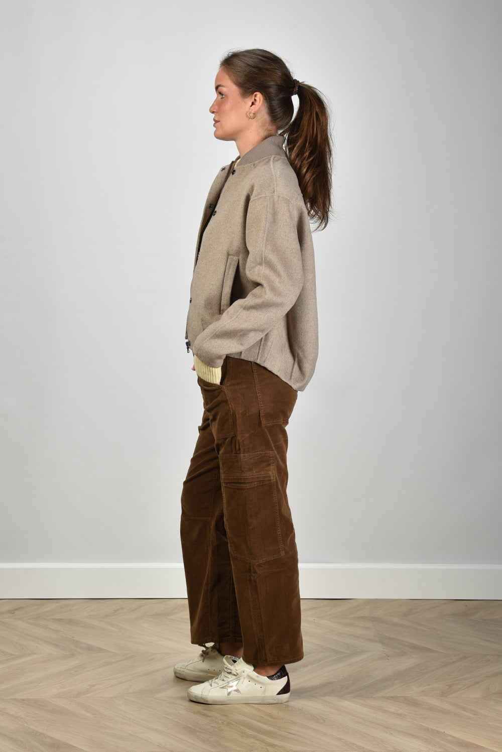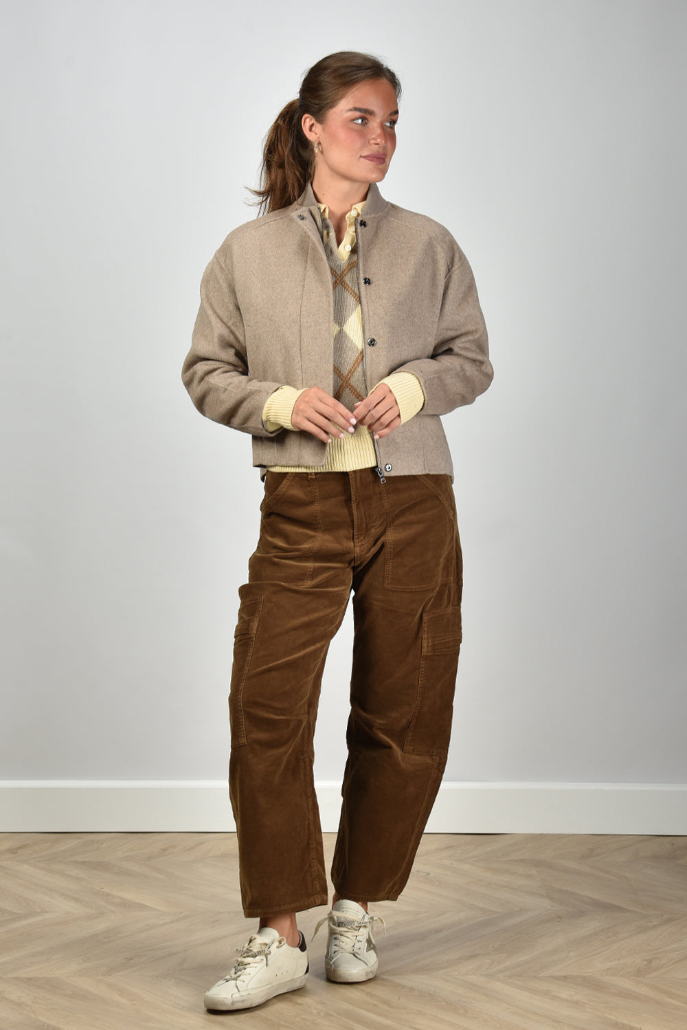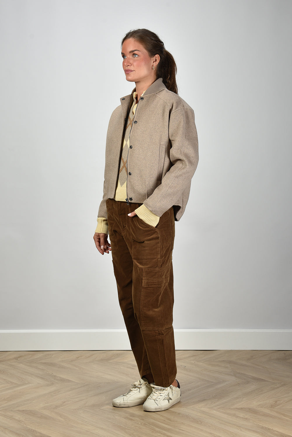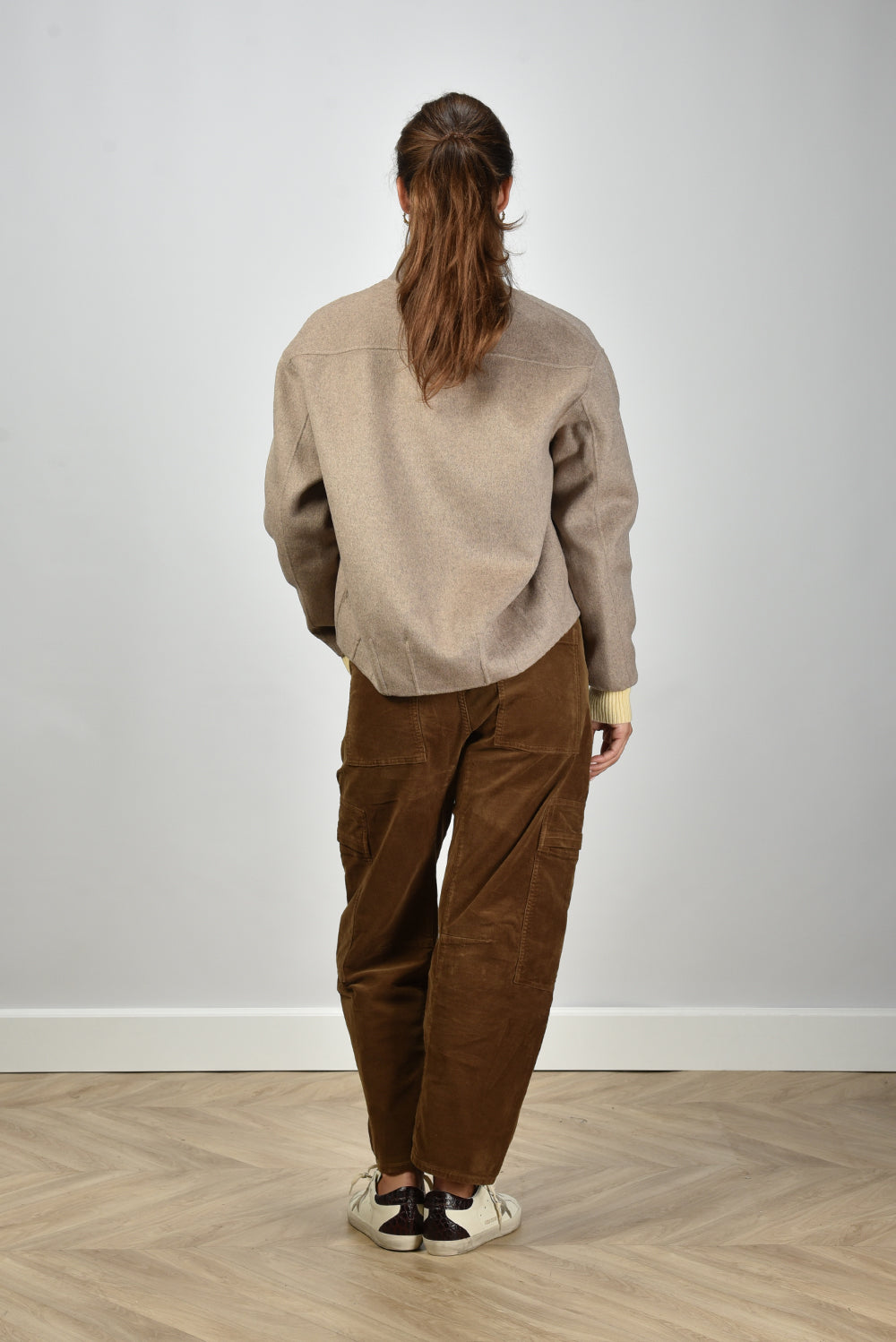 Ons model Lise is 1,73m en Lise heeft maat 36/S/27. deze jas valt normaal op maat