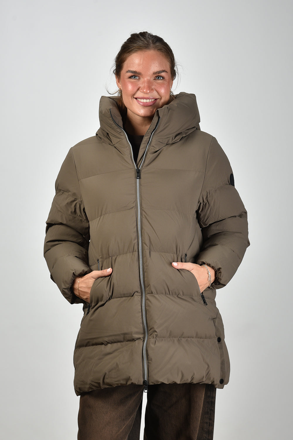 Ons model Lise is 1,73m en Lise heeft maat 36/S/27. deze jas valt normaal op maat