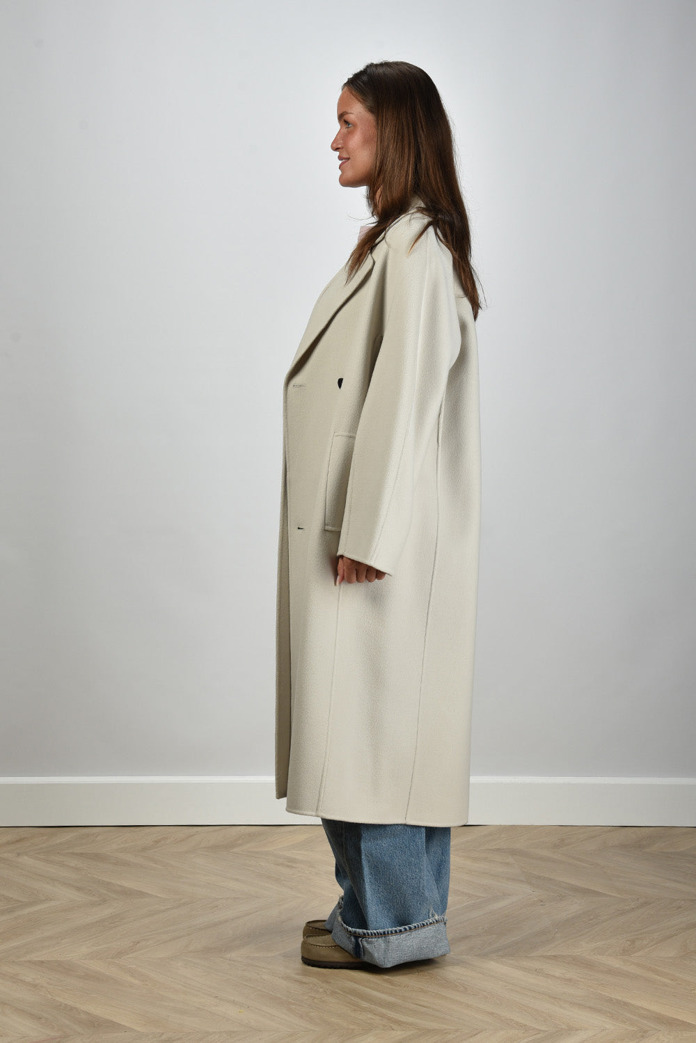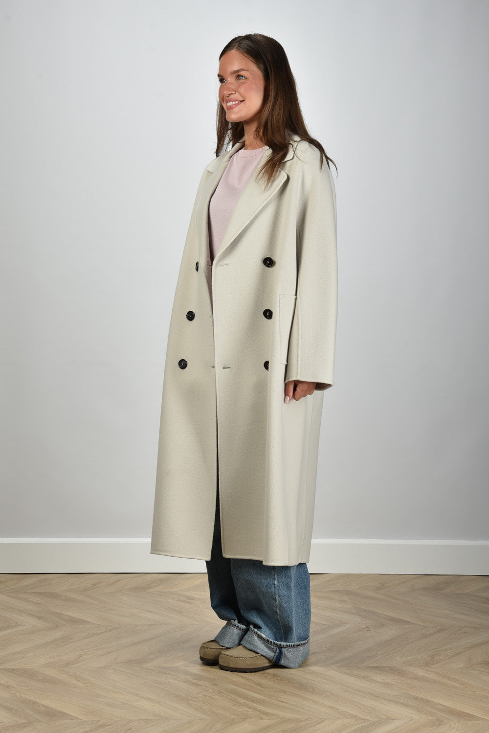 Max Mara jas lang met ceintuur Paul ivory