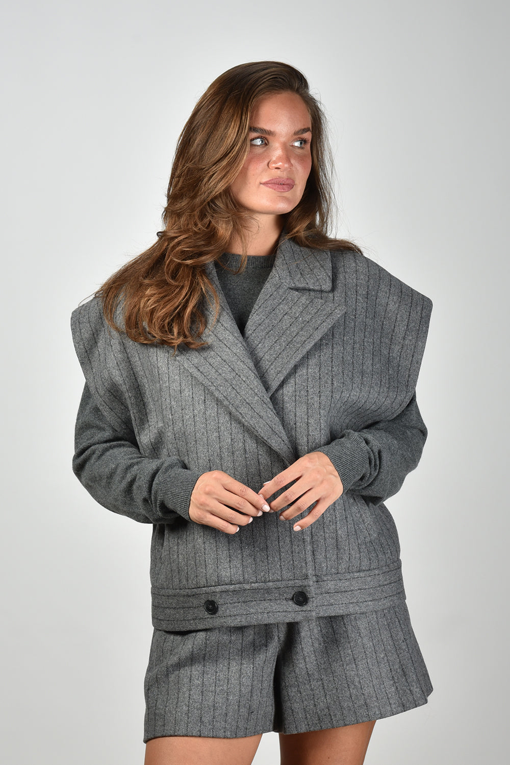 IRO gilet Nestia met streep en knoopsluiting grijs