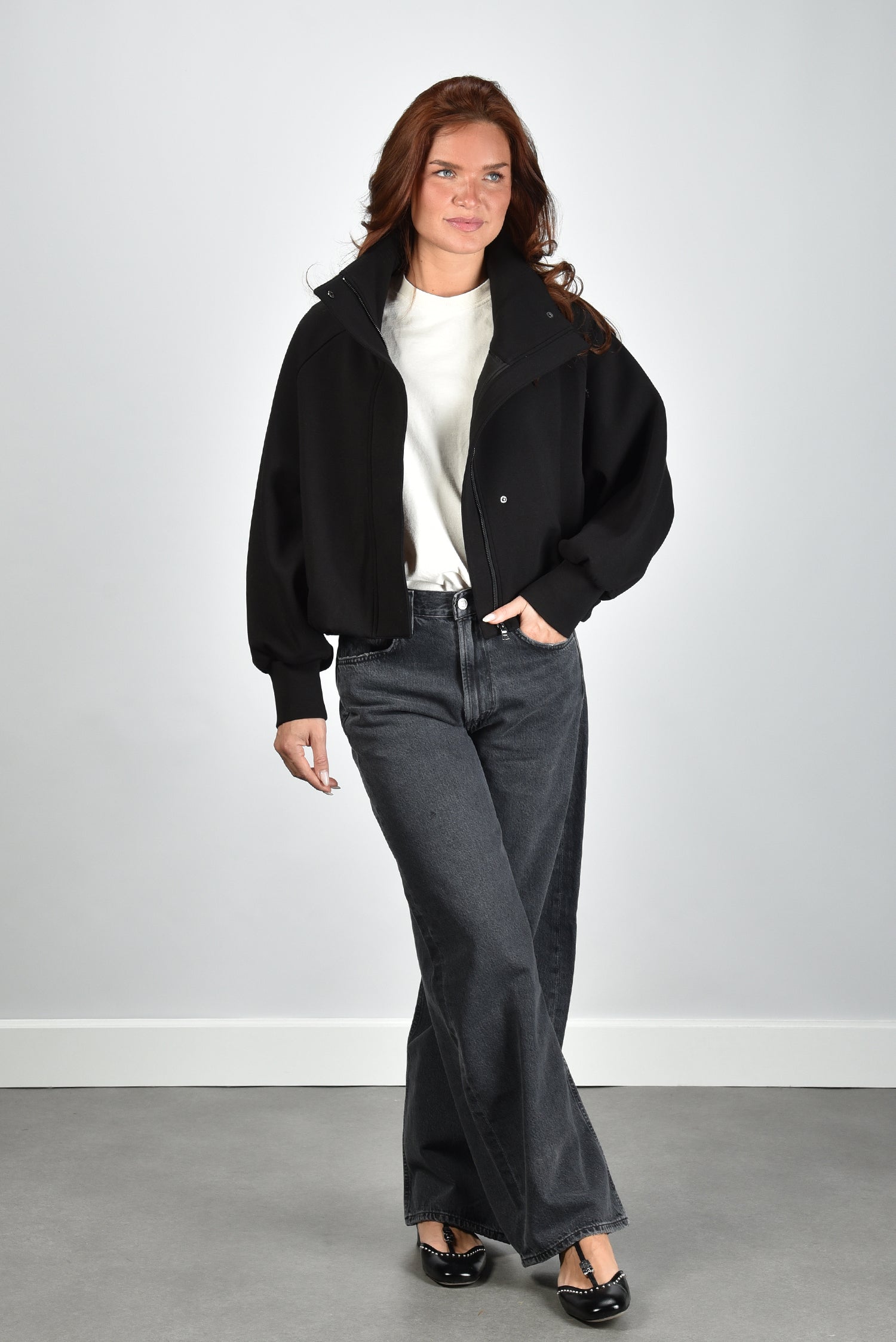 Blonde no.8 cropped jas Bay met ritssluiting zwart