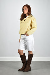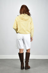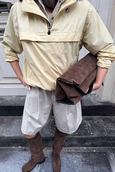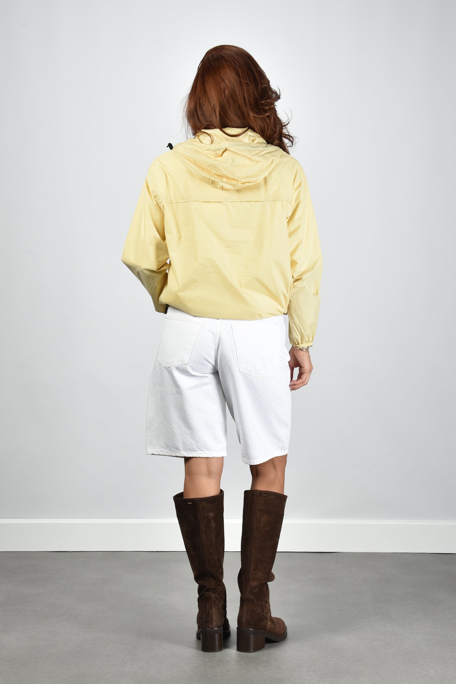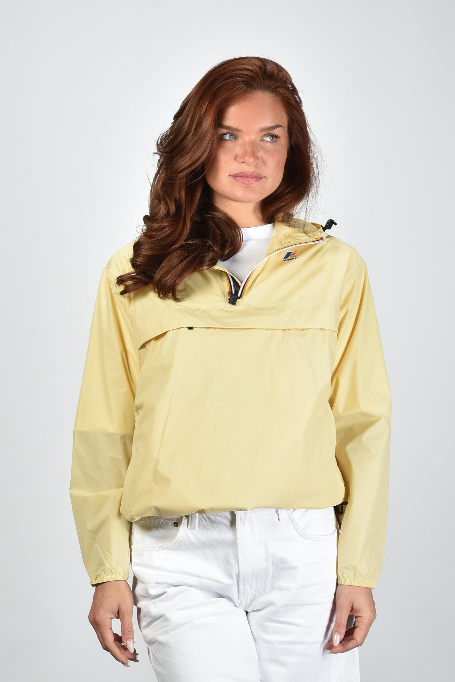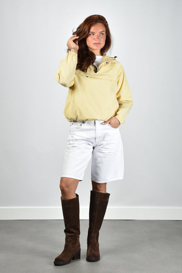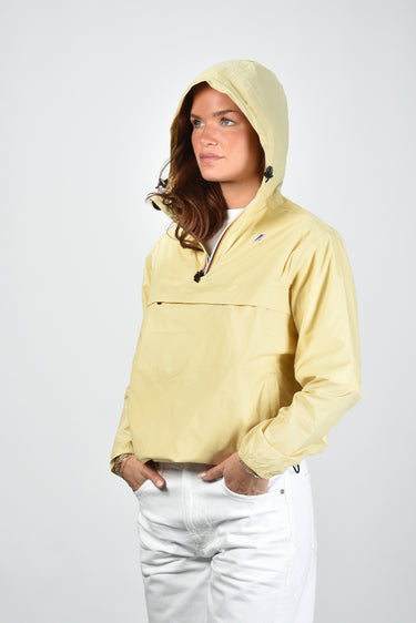 Hier zie je het jack Leon van KWAY in een zachte beige parsnip tint. De halve ritssluiting geeft de voorkant een clean detail en laat het jack luchtig vallen. De stof van 100 percent polyamide voelt licht aan en houdt goed stand bij wisselvallig weer. De capuchon en de elastische manchetten sluiten netjes aan en houden de vorm strak. Het subtiele logo op de borst geeft dat herkenbare KWAY accent. Dit jack valt normaal op maat, dus je kunt uitgaan van je eigen maat.