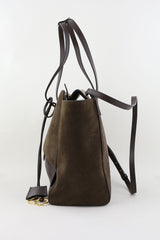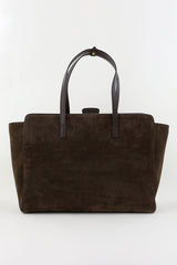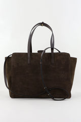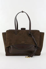 Hidesins tas shopper Flap L van suede met leren details bruin