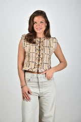 Zie hier het Marant Etoile gilet Cerza in ecru van Isabel Marant. Dit elegante kledingstuk is vervaardigd uit 100% katoen en biedt een normale pasvorm voor ultiem comfort. Handwas aanbevolen om de kwaliteit te behouden. Model Lise draagt maat M, met een lengte van 1,73m. Artikelnummer: GI0050FA-C1J03E-23EC-Ecru.