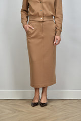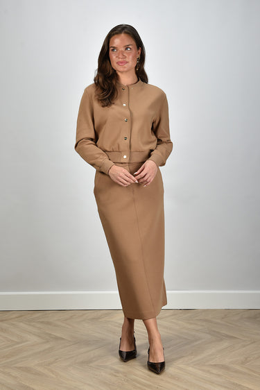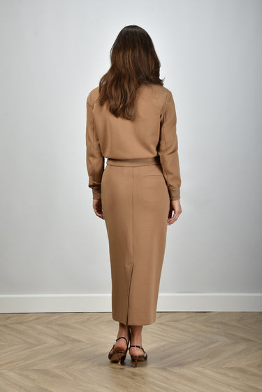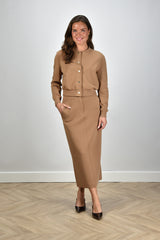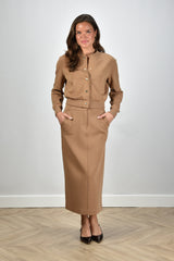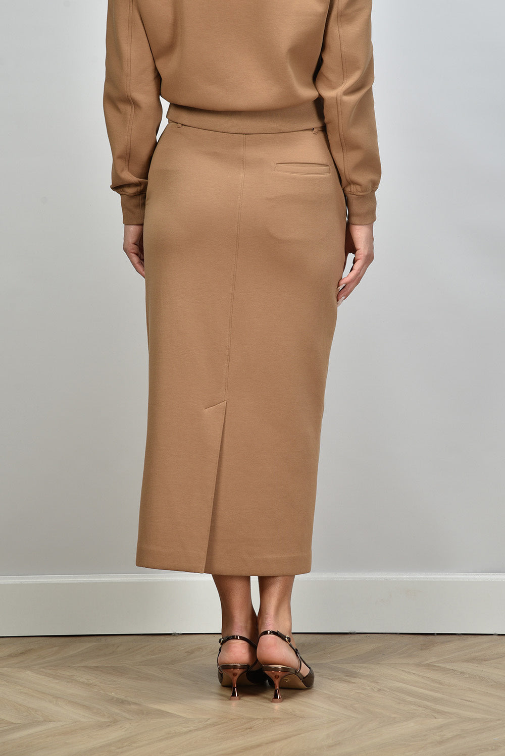 Zie hier de S Max Mara rok Como in Colonial bruin. Deze elegante rok biedt een normale pasvorm en is vervaardigd uit 78% katoen en 16% polyester, wat zorgt voor comfort en duurzaamheid. Handwas aanbevolen. Model Lise draagt maat M bij een lengte van 1,73m. Artikelnummer: Como 005.
