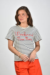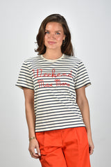 Max Mara Weekend t-shirt Olga gestreept met logo creme