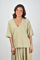 Extreme Cashmere Top Indi met diepe v-hals desert