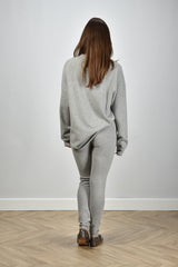 Ons model Lise is 1,73m en Lise heeft maat 38/M/28. deze trui is een one size fit