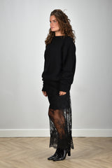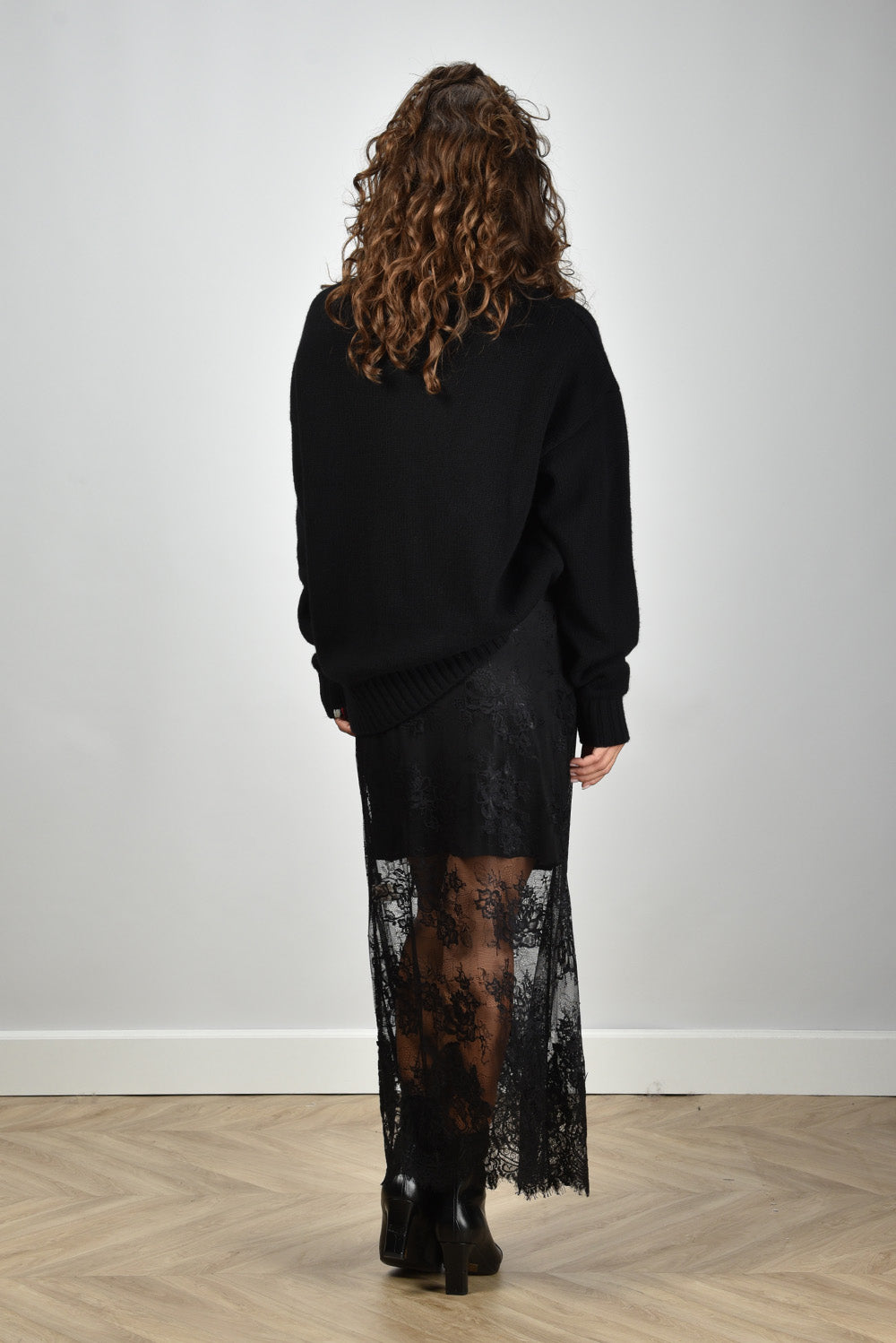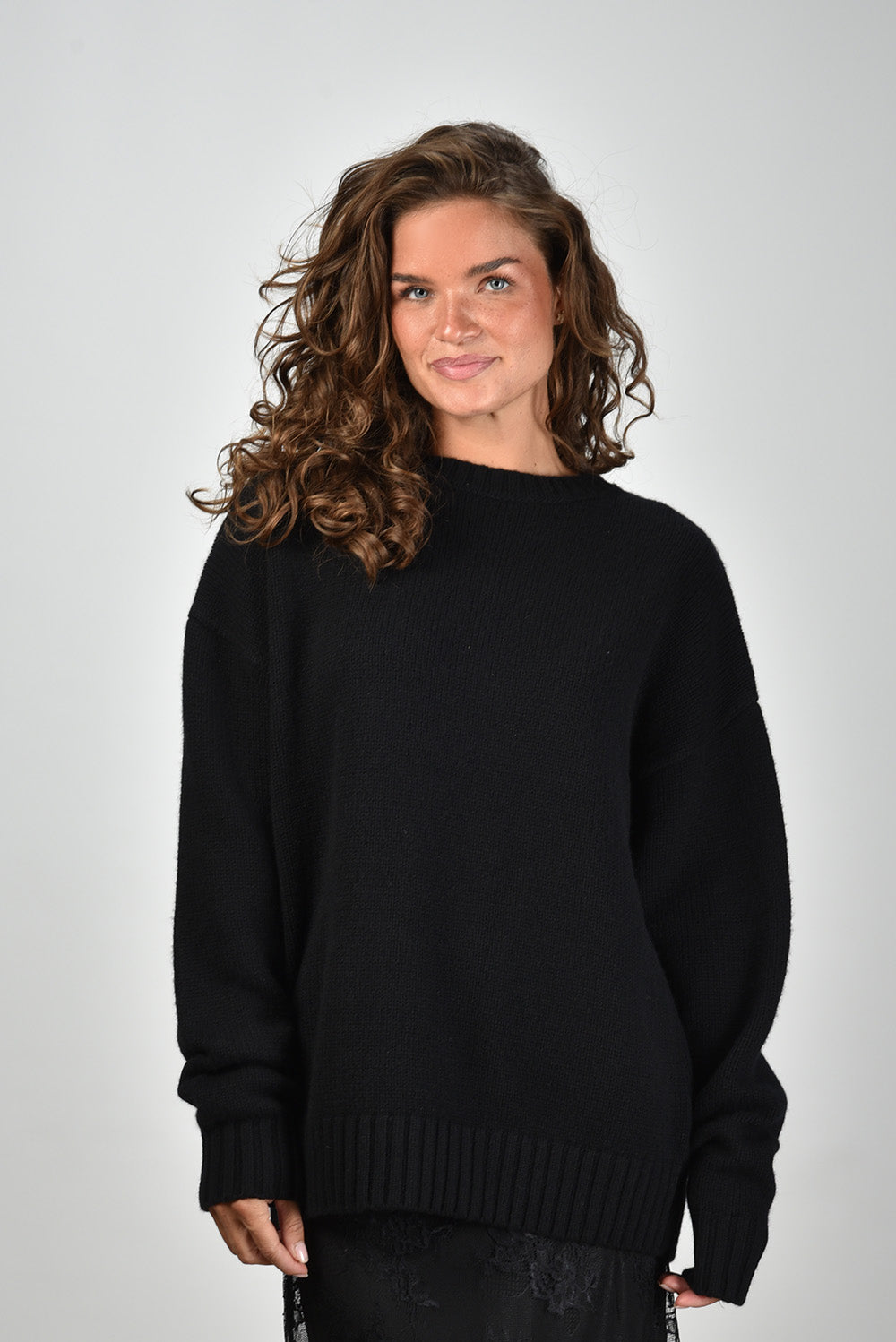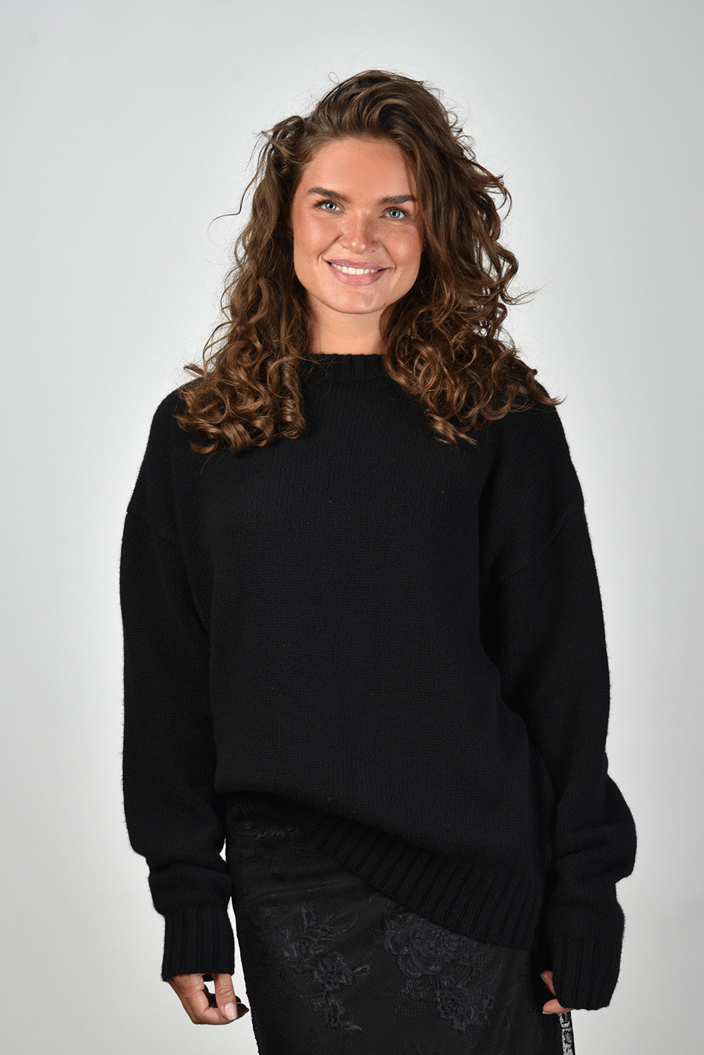 Zie hier de Extreme Cashmere trui Lovely raven, een luxueuze keuze voor elke garderobe. Gemaakt van 100% cashmere in de kleur 'raven', biedt deze one size trui ultiem comfort en stijl. Lise draagt maat M bij een lengte van 1,73m. Artikelnummer: 383-174-01-TU-01-Raven-MS251.