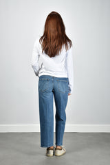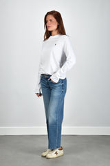 Het t-shirt ADC Ts Rouge van Ami Paris is een helderwitte longsleeve met een ontspannen pasvorm. Op de borst staat subtiel het rode Ami de Coeur-logo, herkenbaar maar nooit nadrukkelijk. De lange mouwen vallen recht zonder boorden, wat het shirt zijn rustige lijn geeft. Gemaakt van 100% katoen dat stevig maar zacht aanvoelt op de huid. Dit item is een klassieker van Ami Paris, bekend om de pure eenvoud en Franse nonchalance. Mooi te dragen met de Golden Goose sneakers Superstar GWF00102.F007505.82996 white/platinum/burgundy voor een ontspannen, stijlvolle combinatie.