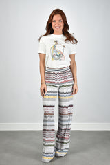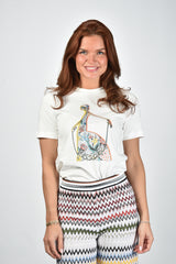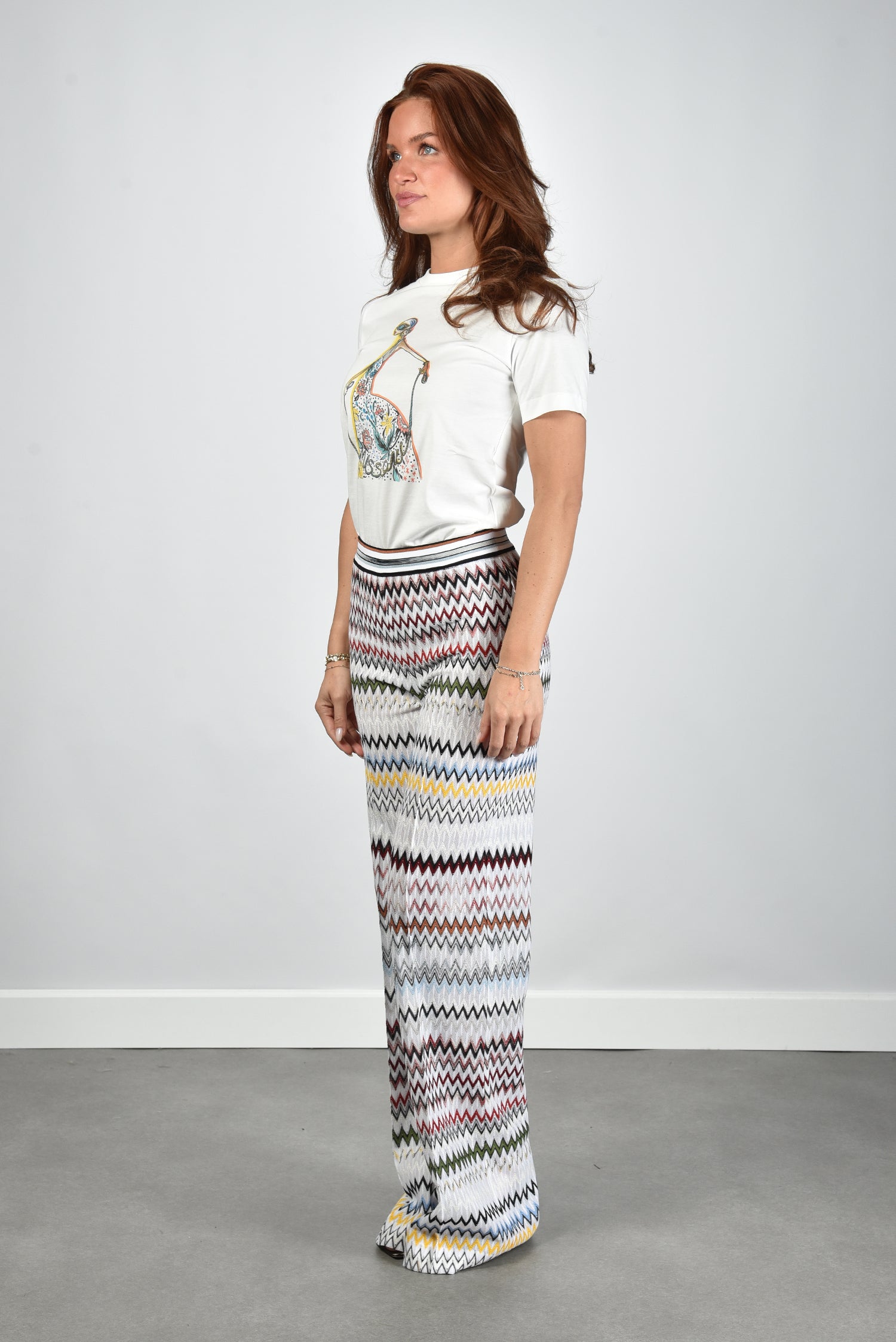 Dit witte t shirt van Missoni voelt fris en modern. De zachte katoenkwaliteit geeft het een soepele vorm die prettig draagt. Op de borst valt een kleurrijke illustratie op, waarin subtiel het logo is verwerkt. De ronde hals en korte mouwen houden de pasvorm klassiek en eenvoudig te stylen. Combineer dit t shirt met de Missoni blazer in agave green voor een speelse en tegelijk verzorgde set. Het valt normaal op maat, dus je kunt gerust je eigen maat nemen.