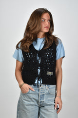 Ganni gehaakt vest met strikdetail zwart