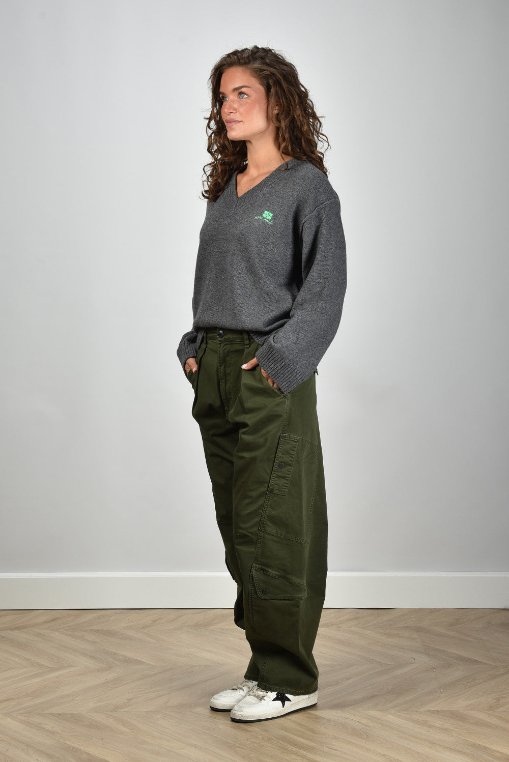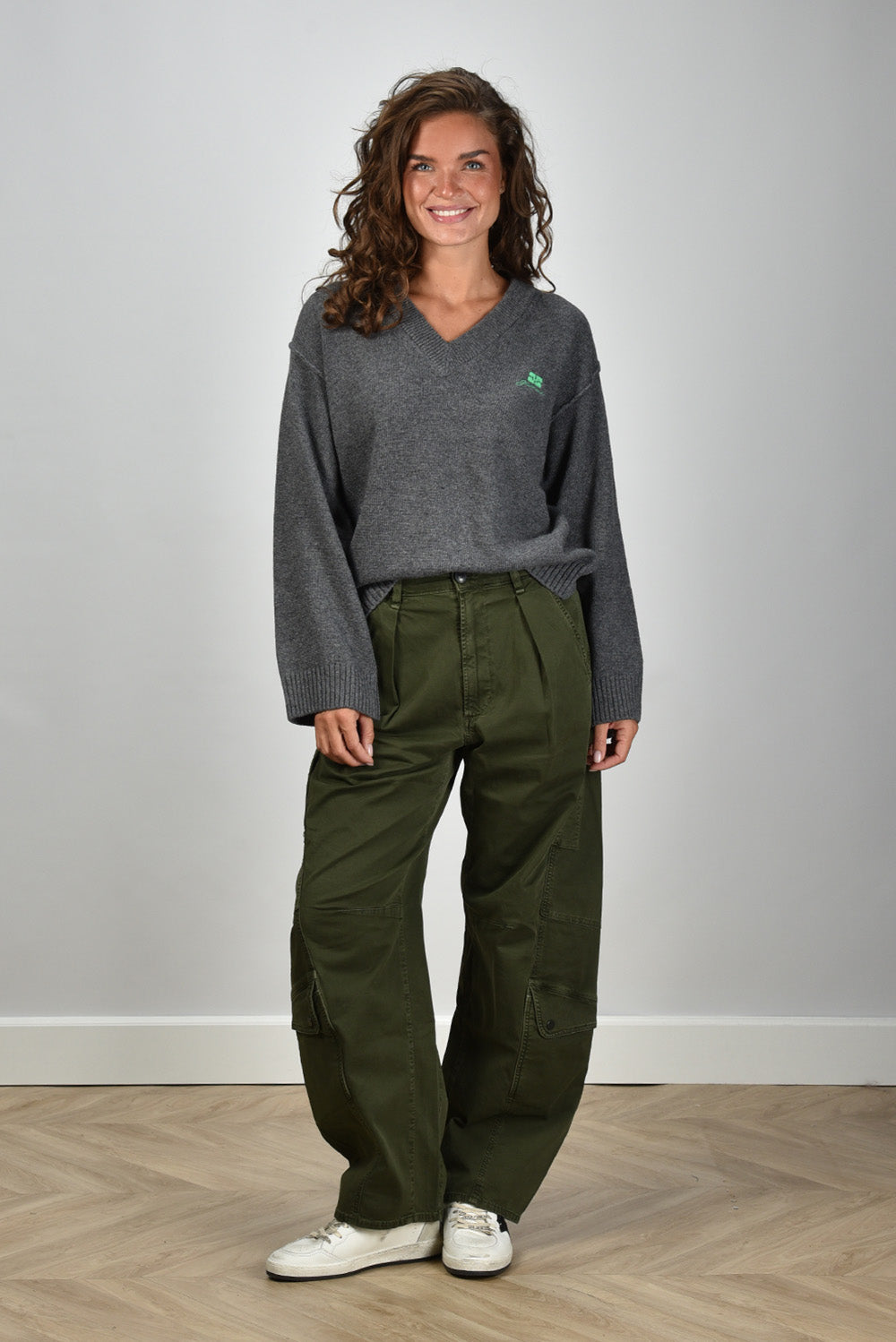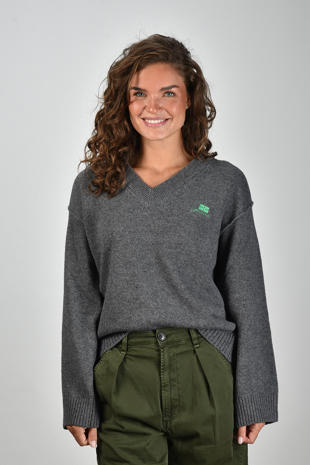 Ganni trui met V-hals K2589 grijs