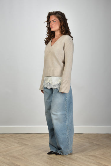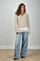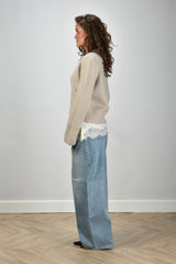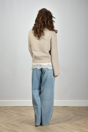 Ons model Lise is 1,73m en Lise heeft maat 36/S/27. deze trui valt normaal op maat