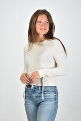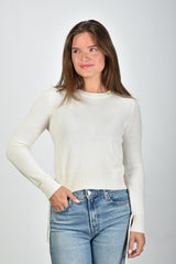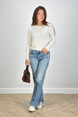 Lisa Yang cashmere trui Zora met ronde hals en lange mouwen crème
