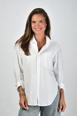 Een klassieke, witte blouse kan niet ontbreken in je kast! Deze blouse van Citizens of Humanity, model Kayla, is daarom ook dé perfecte basis! Naast de lange mouwen en kraag, heeft de blouse ook een vakje op de borst. Je kunt hem overal mee combineren. Van een stoere jeans om mee naar de stad te gaan tot een mooie pantalon voor op kantoor! Model heeft maat M en draagt maat M.