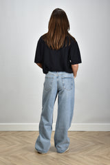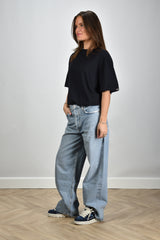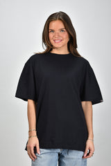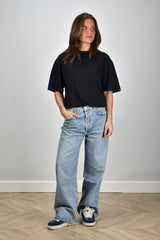 Mooie top van Extreme Cashmere, model Rik, in de kleur navy. Het ontwerp van de top is eenvoudig en toch verfijnd. Met zijn relaxte pasvorm valt hij vleiend om het lichaam, waardoor een moeiteloos chique uitstraling ontstaat. Verder heeft de top een ronde hals en korte mouwen. Of je nu op zoek bent naar een alledaagse top met een vleugje luxe of een stijlvolle aanvulling op je formele garderobe, de top biedt de perfecte balans tussen comfort en elegantie. Model is 1,73 m, heeft maat M en draagt maat One Size