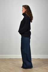 Prachtige trui van Extreme Cashmere, model Oversize Xtra, in de kleur navy. Deze trui combineert elegantie en ultiem comfort. Doordat deze trui van cashmere is, is hij heerlijk warm voor de koudere dagen. Deze trui is voorzien van lange mouwen en een col. Combineer deze trui met andere items van Extreme Cashmere of draag deze trui op een jeans. Deze trui heeft een normale pasvorm. Model is 1,75m, heeft maat S en draagt maat One Size.
