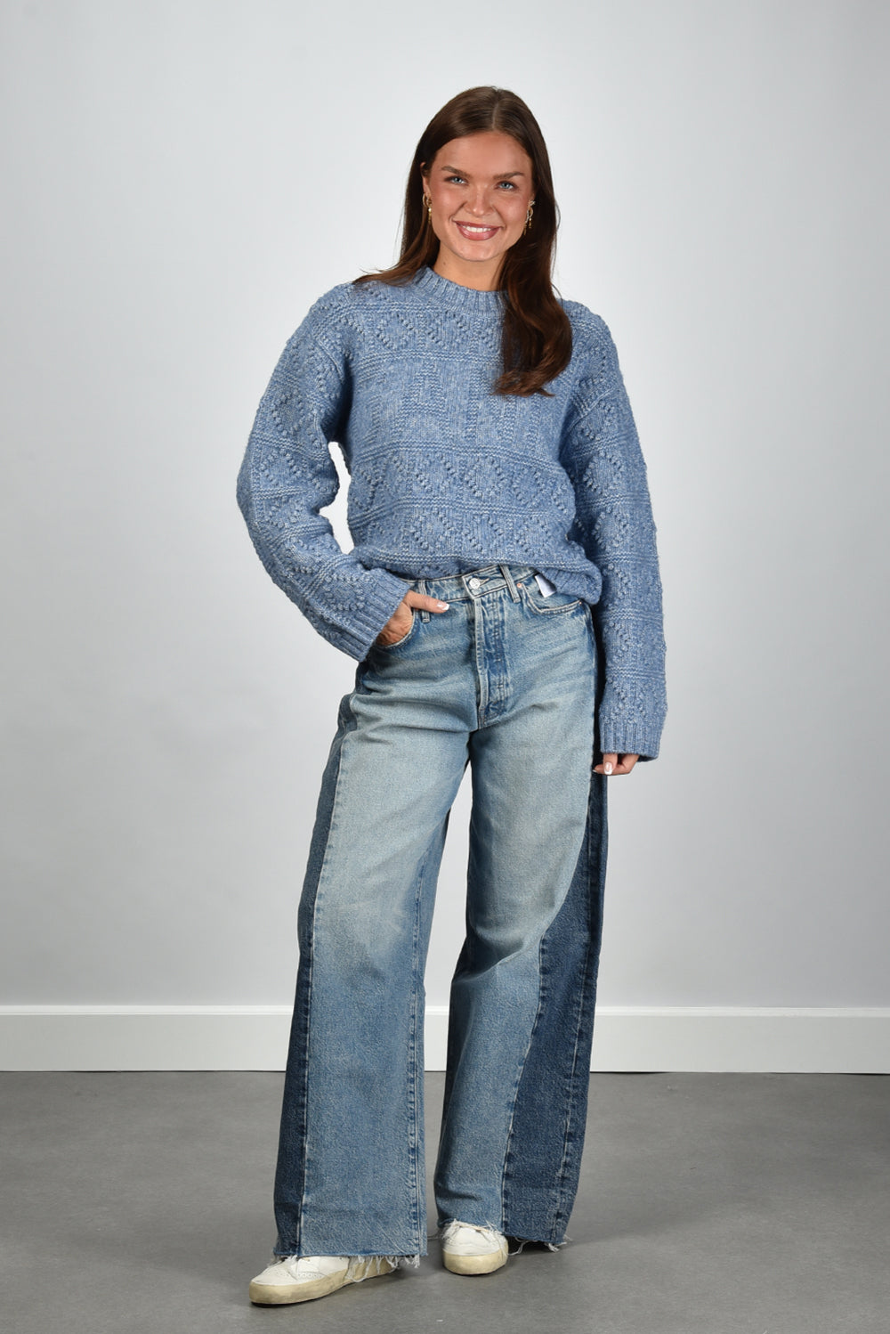 Ons model Lise is 1,73m en Lise heeft maat 36/S/27. Deze trui valt normaal op maat, we adviseren je je eigen maat te bestellen.
