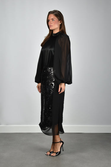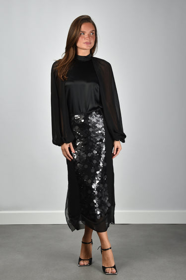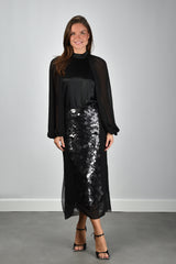 De blouse Cave van Joseph heeft die kenmerkende eenvoud die alles zegt zonder moeite te doen. Gemaakt van dubbel satijn met een lichte glans die soepel langs het lichaam valt. De zwarte tint – door Joseph zelf black genoemd – versterkt die strakke lijn en maakt het een veelzijdig stuk voor vele gelegenheden. De pasvorm is normaal, wat zorgt voor een natuurlijke balans tussen los en getailleerd. Mooi met een pantalon voor een zakelijke dag, of nonchalant gestyled met een jeans. En voor een elegante avond zet je er een paar fijne sandalen onder. Joseph staat bekend om zijn aandacht voor materiaal en vakmanschap, wat je ook hier duidelijk voelt: elk detail klopt gewoon.