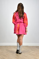 Hoe gaaf is deze jurk van Sage & Ivy?! model Anna, in de kleuren fuchsia/orange/red. De jurk met deze kleuren combinatie is speciaal ontworpen voor Marjon Snieders. Dit maakt de jurk uniek. Maak je look af met je favoriete crossbody en laarzen van GANNI. Model is 1,73 m, heeft maat 38 en draagt maat (M).