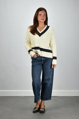 Sporty & Rich trui SRC Cableknit V-Neck creme