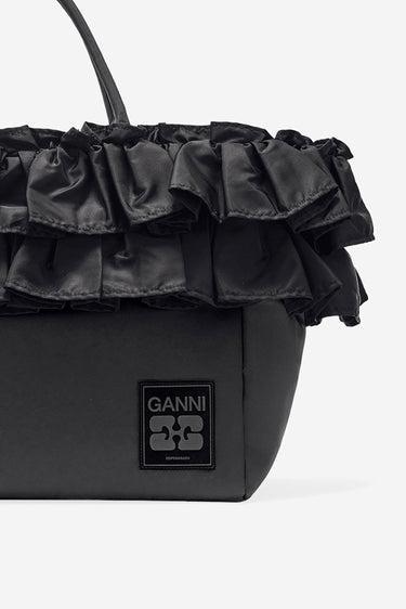 Ganni shopper zipped pocket XXL Ruffle A7188 zwart