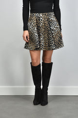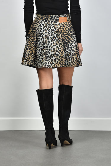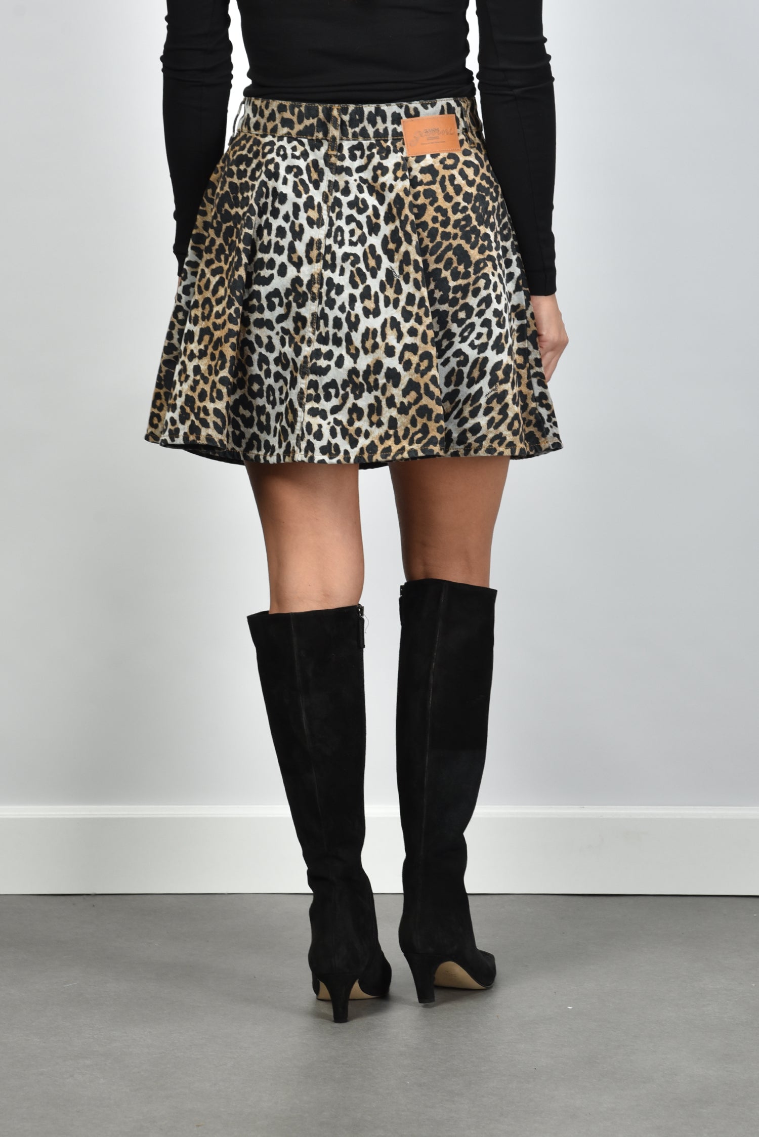 De Circle rok dierenprint van Ganni is een echte blikvanger met zijn luipaardprint in warme tinten bruin, zwart en beige. De rok valt soepel en iets wijder uit naar beneden, waardoor hij tijdens het lopen een natuurlijke soepelheid behoudt. De plooien geven extra structuur en maken de vorm wat speelser. Gemaakt van 100 procent katoen voelt de stof luchtig en stevig tegelijk. Deze rok valt normaal op maat. Combineer hem met de Odare laarzen Sofia sensory nero voor een stoere, vrouwelijke look die goed past bij de karakteristieke stijl van Ganni.