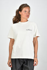Bekijk hier het Golden Goose t-shirt wit, een verfijnd kledingstuk ontworpen voor de moderne vrouw. Gemaakt van 100% katoen en uitgevoerd in Heritage White/Black, biedt dit t-shirt een normale pasvorm die zowel stijlvol als comfortabel is. Model Lise draagt maat 38/M en is 1,73m lang. Artikelnummer: GWP01220.P001625.11569-Heritage White/Black.