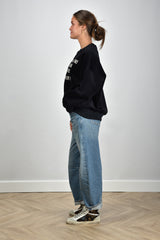 Ons model Lise is 1,73m en Lise heeft maat 38/M/28. Dit product heeft een oversized pasvorm.