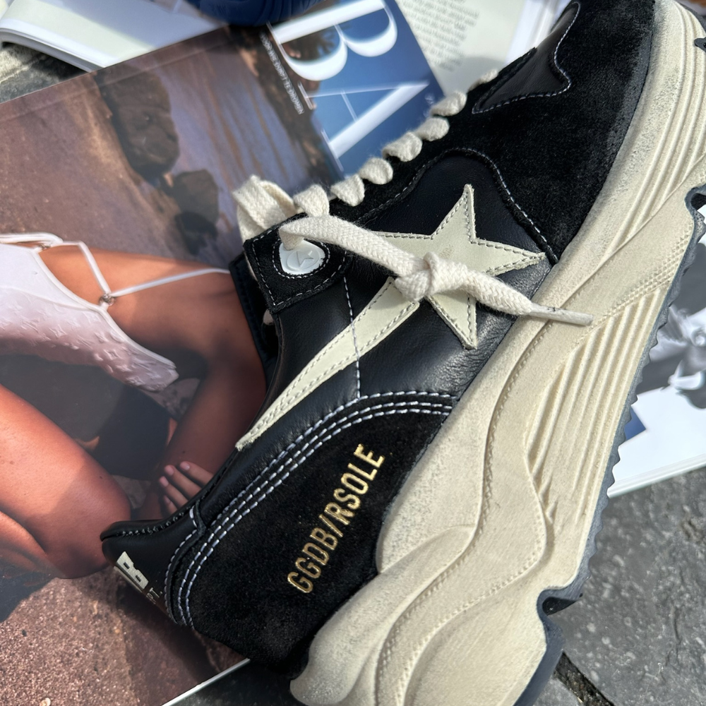 De Golden Goose Running sneakers zijn een iconisch voorbeeld van hoe luxe en comfort samenkomen in een sportieve, moderne stijl. Bij Marjon Snieders in Roermond vind je een exclusieve selectie van deze populaire modellen, waaronder Running Dad, Running Sole en Running Marathon. Elk paar is handgemaakt in Italië van hoogwaardig leer en suède, met een robuuste rubberen zool voor grip en duurzaamheid. Dankzij de ambachtelijke afwerking en subtiele vintage look is geen enkel paar identiek, waardoor elke sneaker een uniek statement piece is.