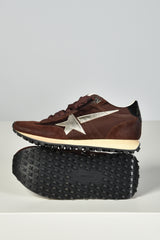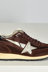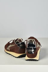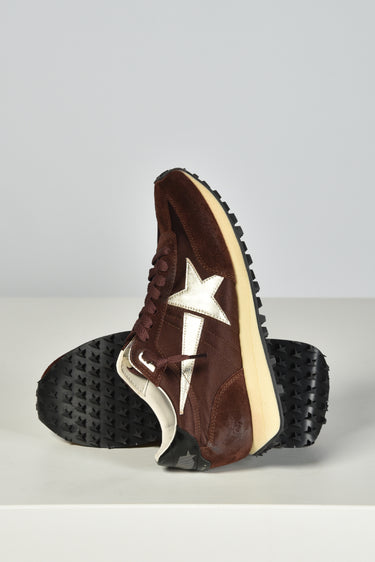 De bruine Running Marathon sneakers van Golden Goose voelen direct bijzonder door de mix van suède en satijn. Het zachte bruin wordt stijlvol onderbroken door platinum details en de iconische zilverkleurige ster aan de zijkant. De zwarte hielkap zorgt voor een subtiel glanzend contrast. Deze sneakers hebben een normale pasvorm en zitten prettig gedurende de hele dag. Elk paar is met de hand afgewerkt, zoals je van Golden Goose mag verwachten. Combineer ze eens met de beige zwarte Running Marathon variant voor een speelse twist binnen dezelfde lijn.