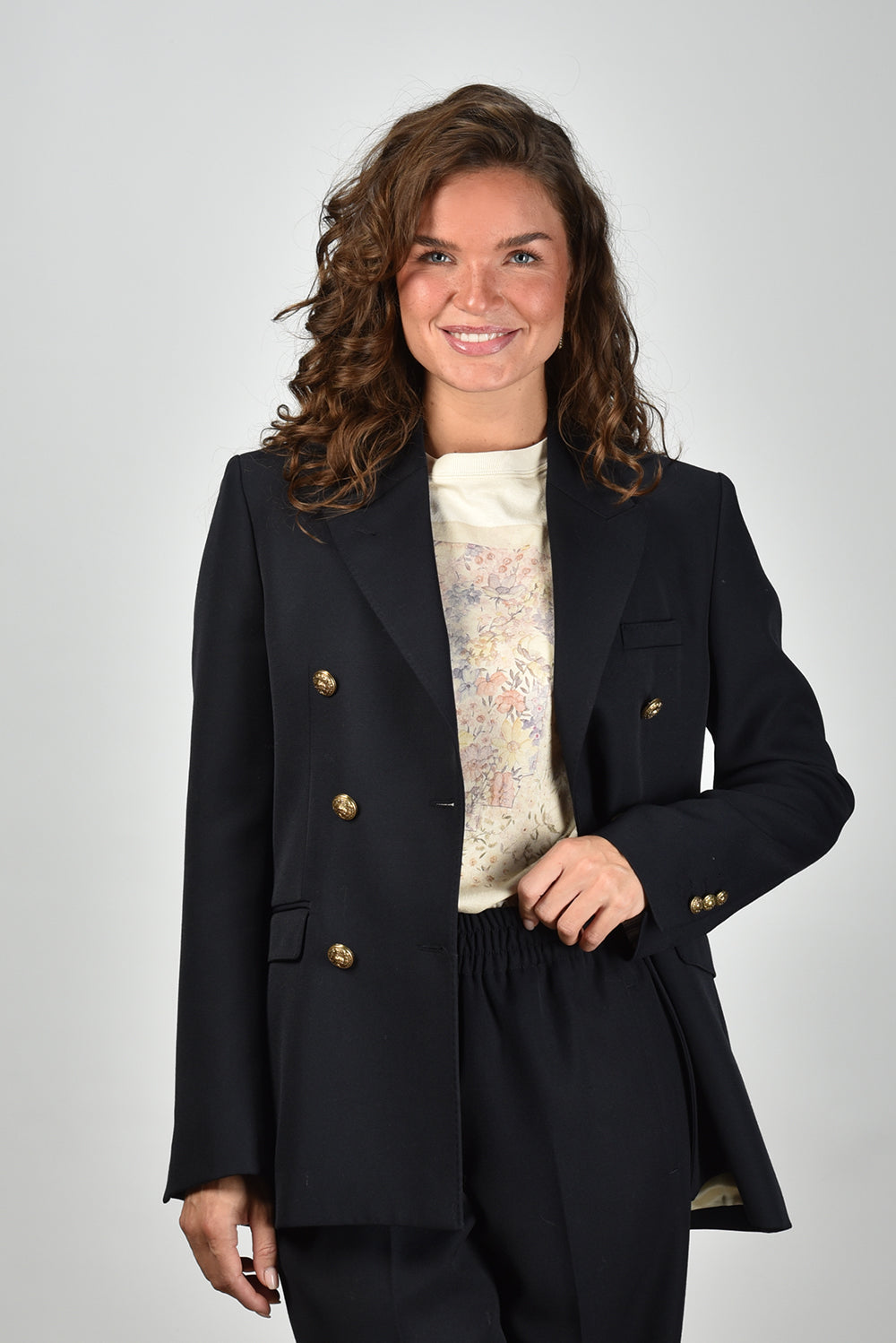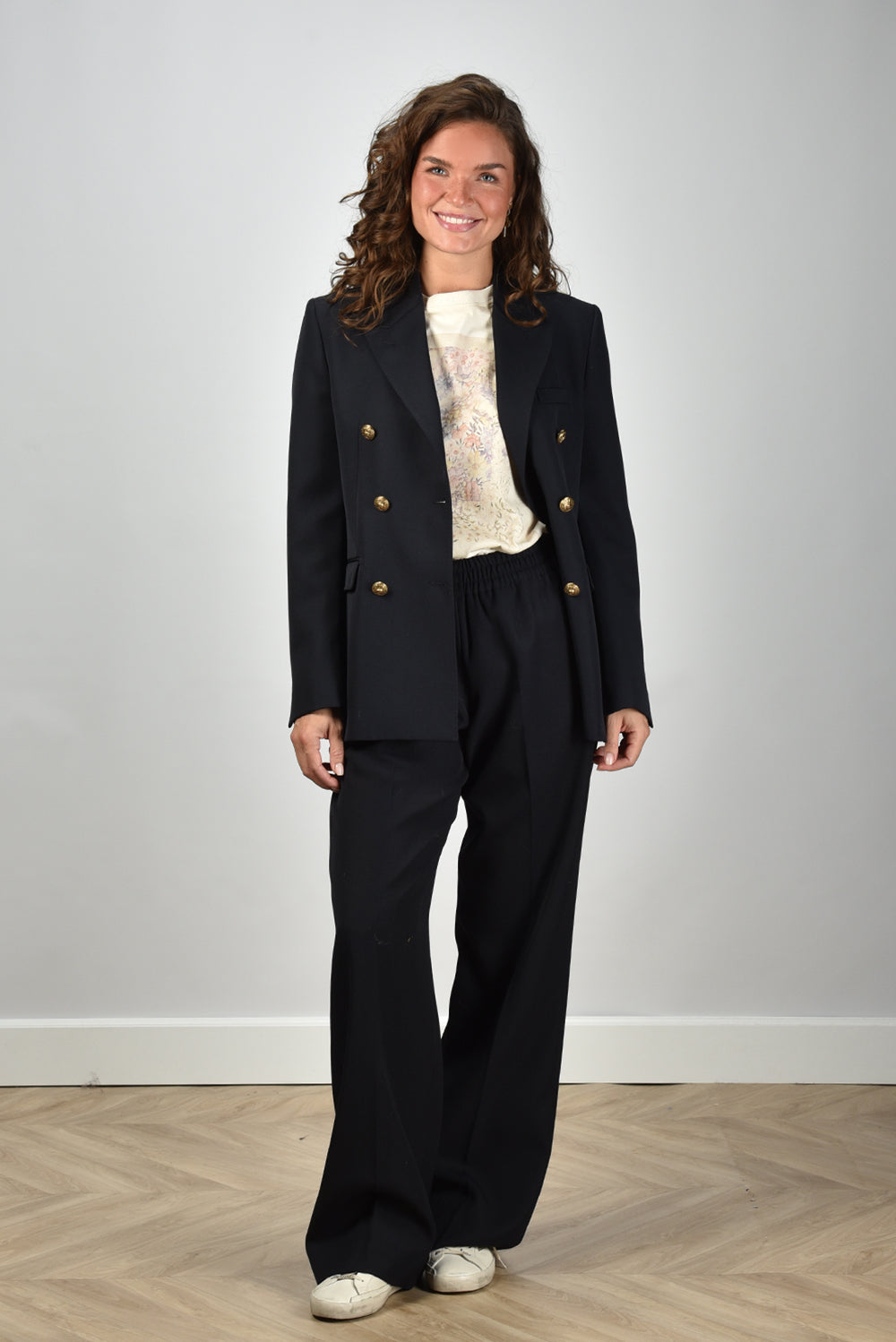 Ons model Lise is 1,73m en Lise heeft maat 36/S/27. deze blazer valt normaal op maat
