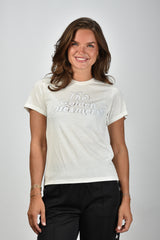 Ons model Lise is 1,73m en Lise heeft maat 36/S/27. Dit t-shirt valt normaal op maat